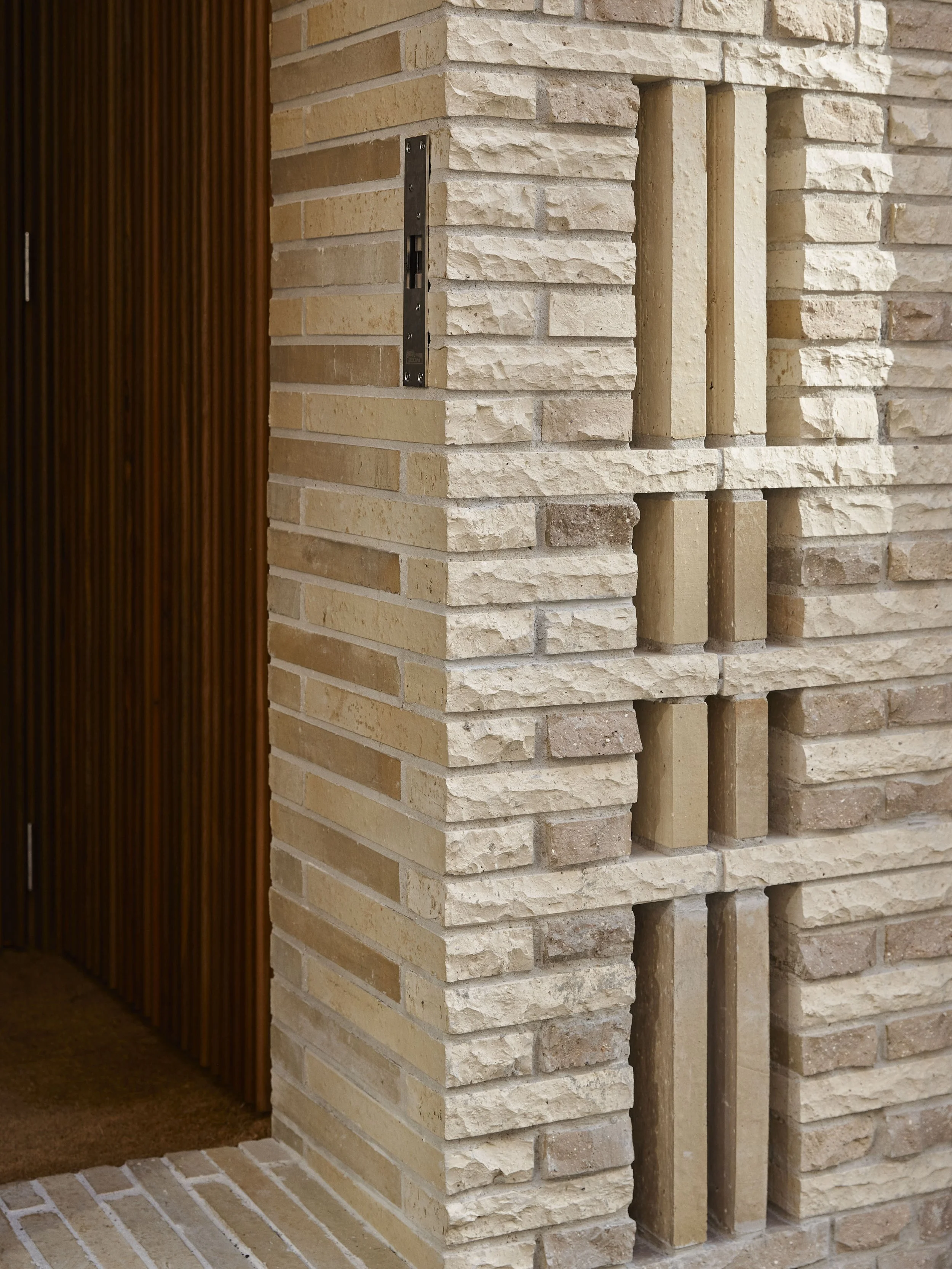 The façade is constructed using reclaimed bricks, some of which are broken and reflect the historic sandstone base of the nearby streets. Photo: Anson Smart