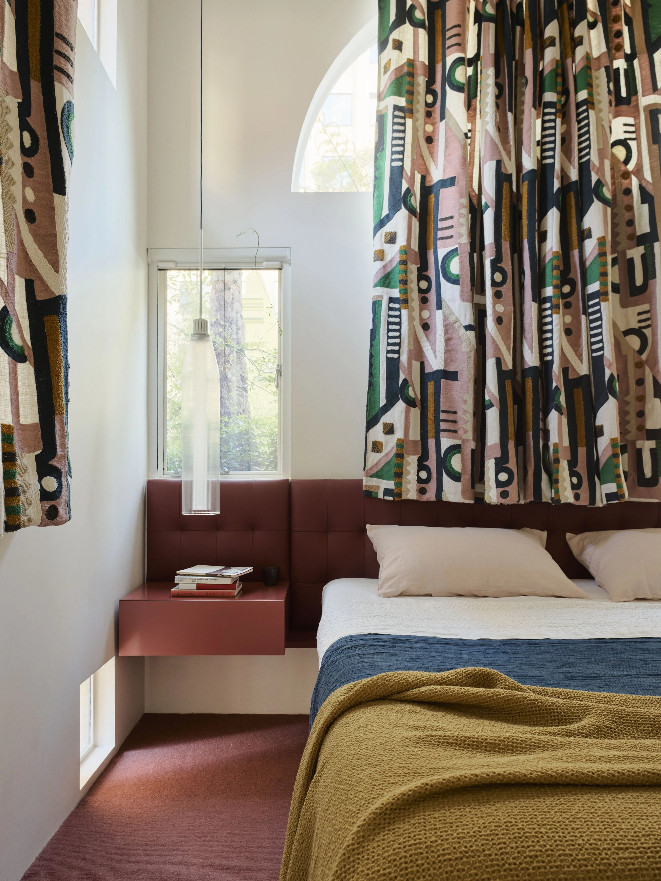 The previous stuffy brick add-on, commonly found behind older Sydney terraces, has been replaced with a vibrant new facade that features dynamic and textured elements. The brickwork and arched windows pay homage to the neighbouring terraces – boasting 15 different openings onto the street, including windows and recesses of various shapes and sizes.