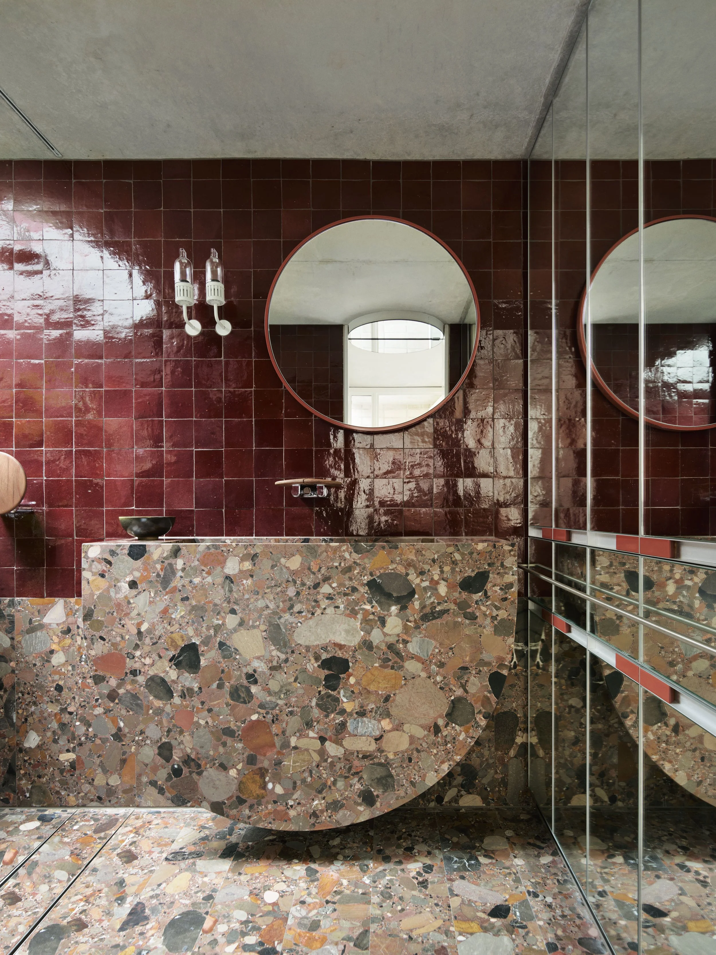 The main bathroom with its sculptural oversized stone basin. Photo: Anson Smart