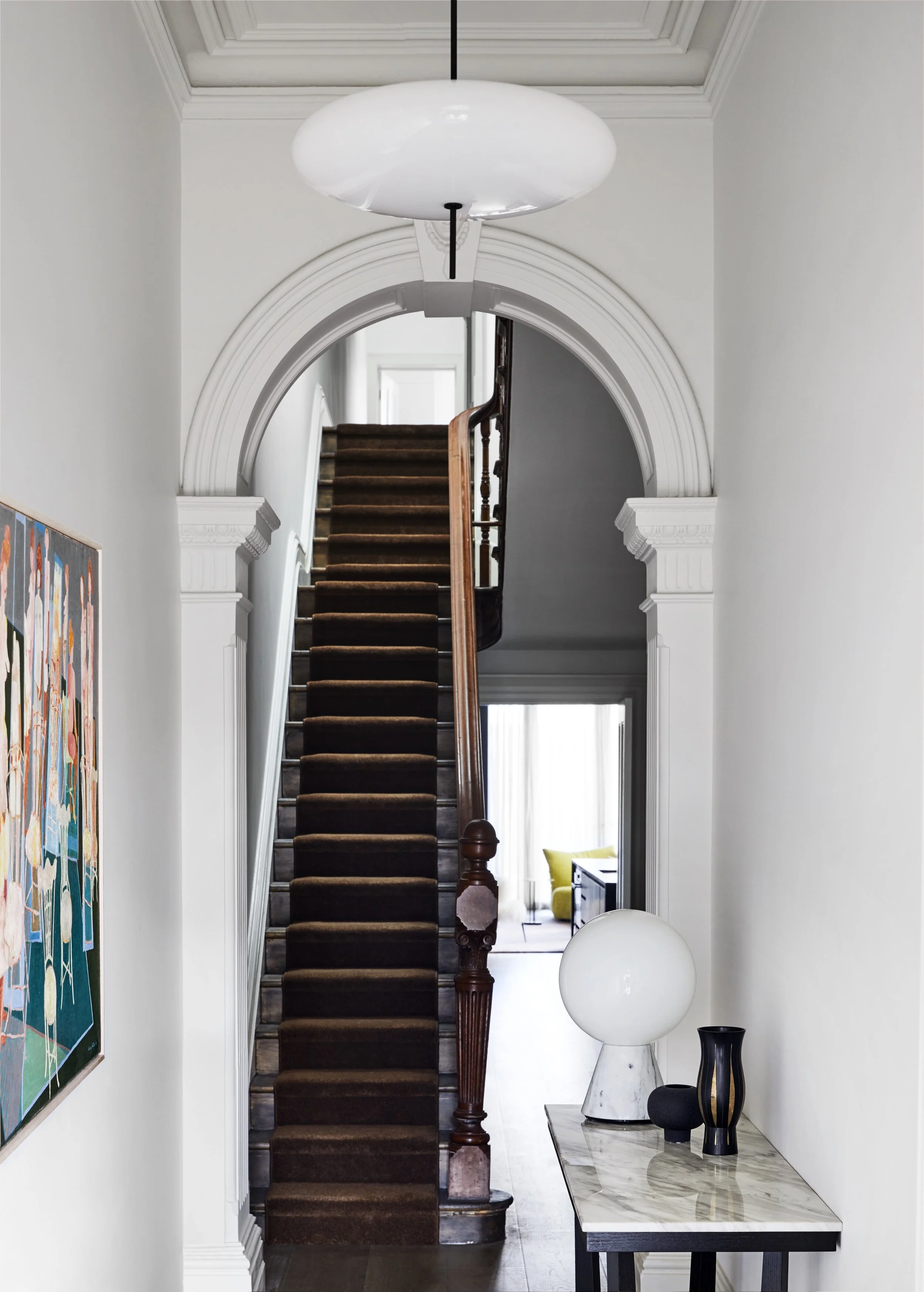 A vintage pendant in the main stairwell makes the most the soaring ceiling whilst signalling a transition between floors.