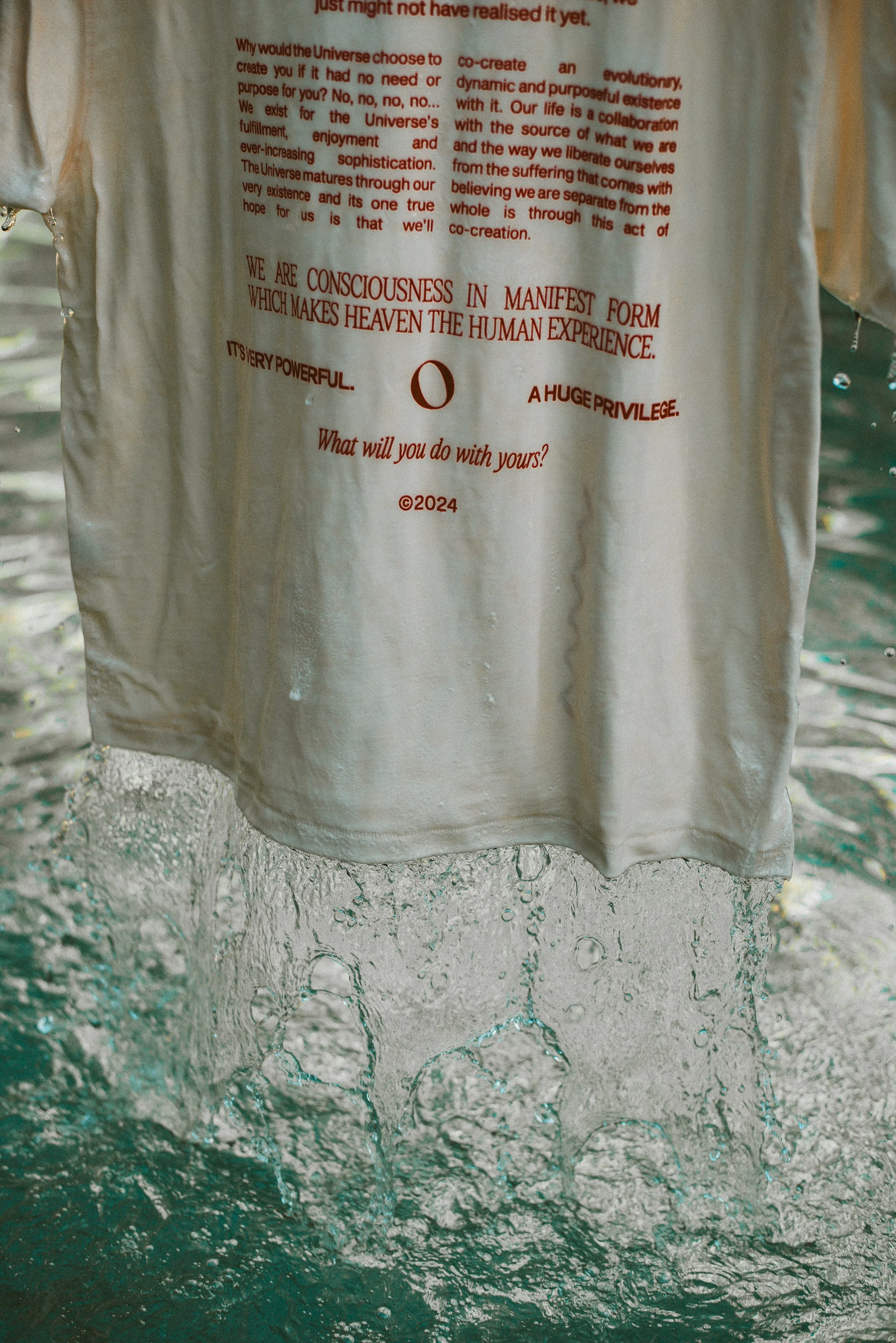 Offline's You Are On Purpose Tee features a passage printed on the back, which is 'the highest realisation available to people through me and Offline’s career and business mentoring programs,' says Alison Rice.