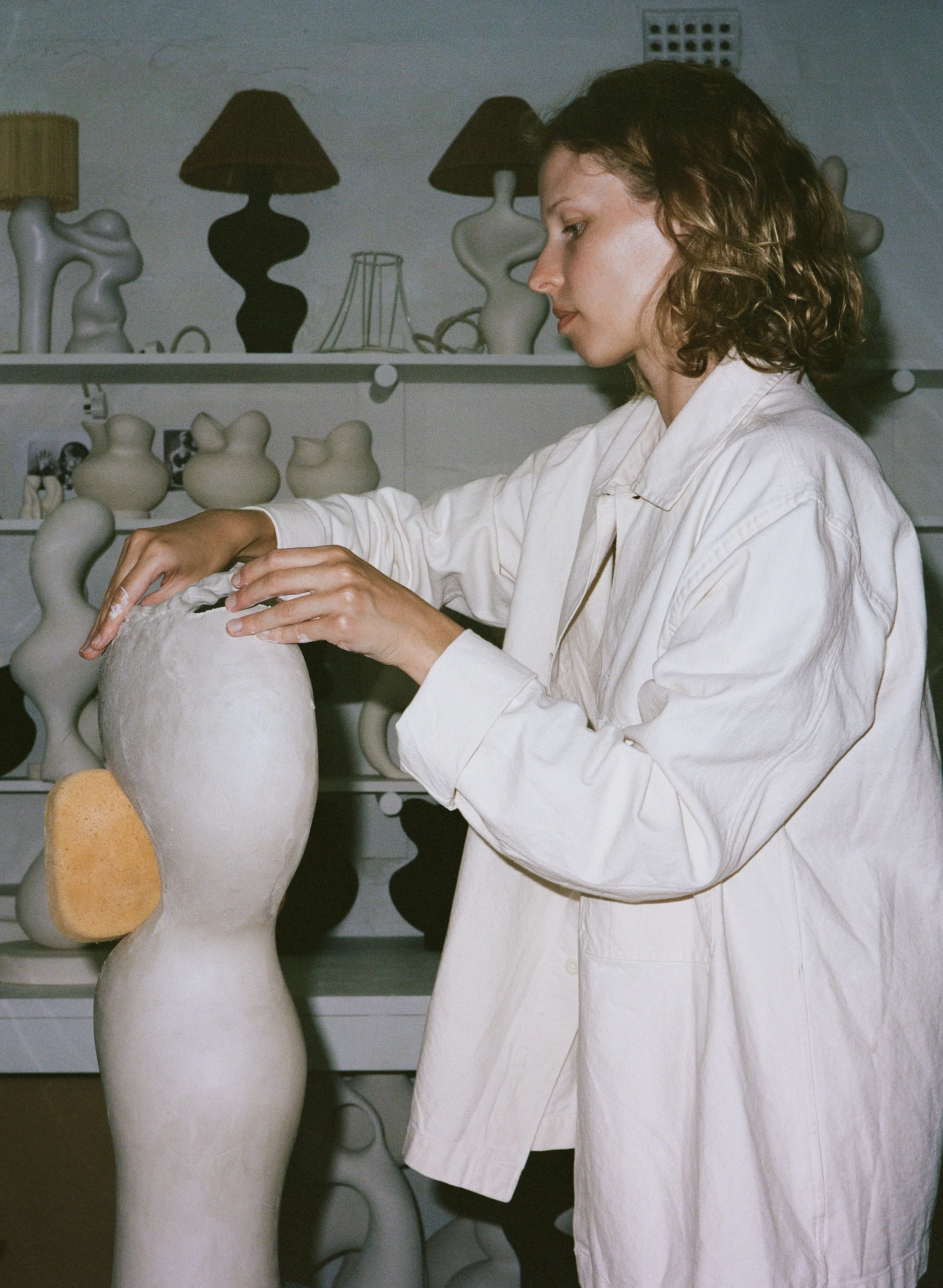 In recent years, the artist has moved away from fashion to explore her curiosity of more tactile mediums. As a self- taught artist, she founded Cosset Ceramics in 2020 and began exploring sculptural forms with lighting.