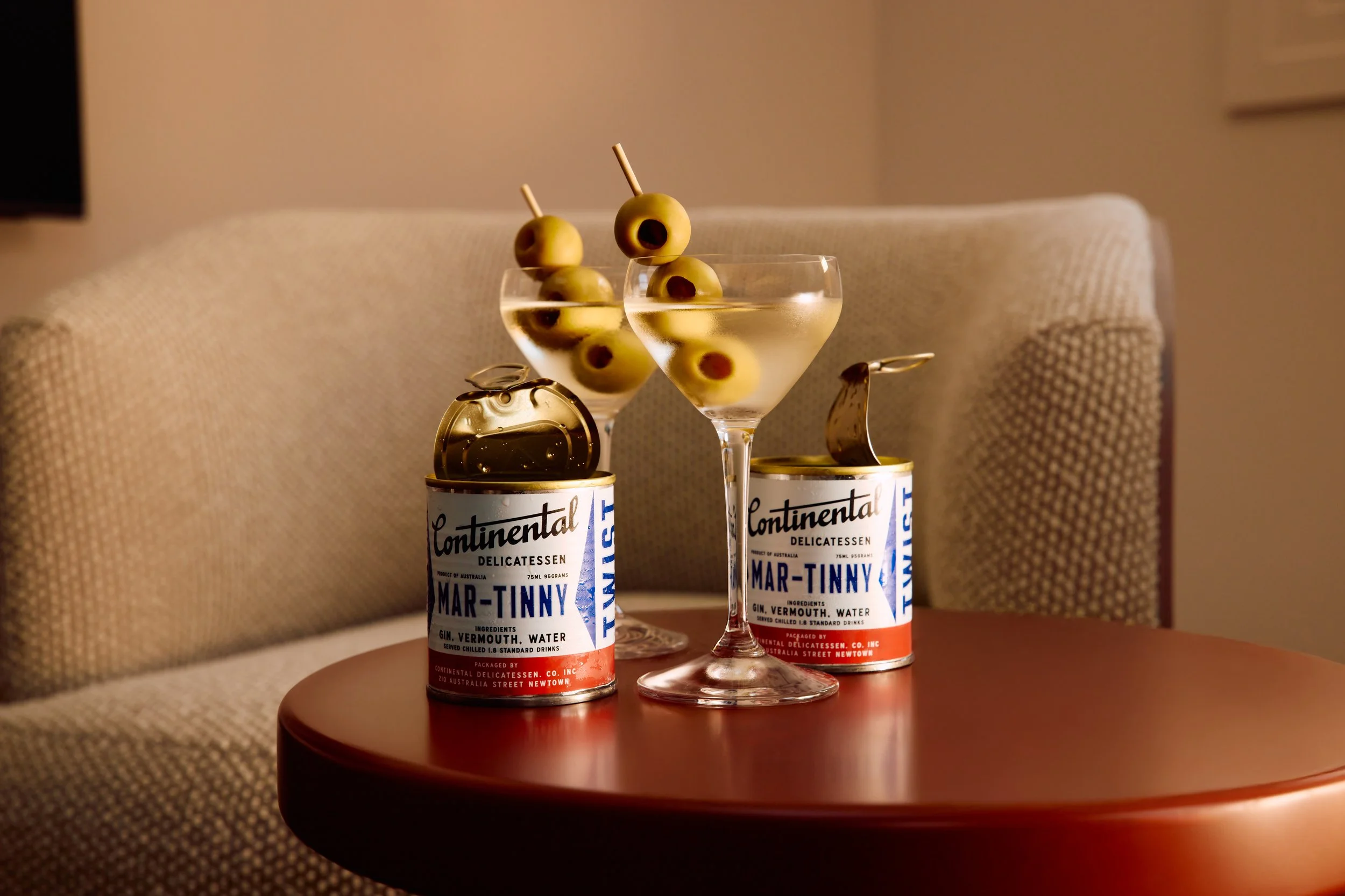 But the magic goes beyond interiors. Set above four of the Inner West’s top restaurants, guests can pre-order curated arrivals—oysters and champagne from Mister Grotto, cheese and charcuterie from Continental, a Mar-tinny or Mexi-can Margarita, even the iconic Flan in a Can. It’s full immersion into the best of Sydney dining, without leaving the building.