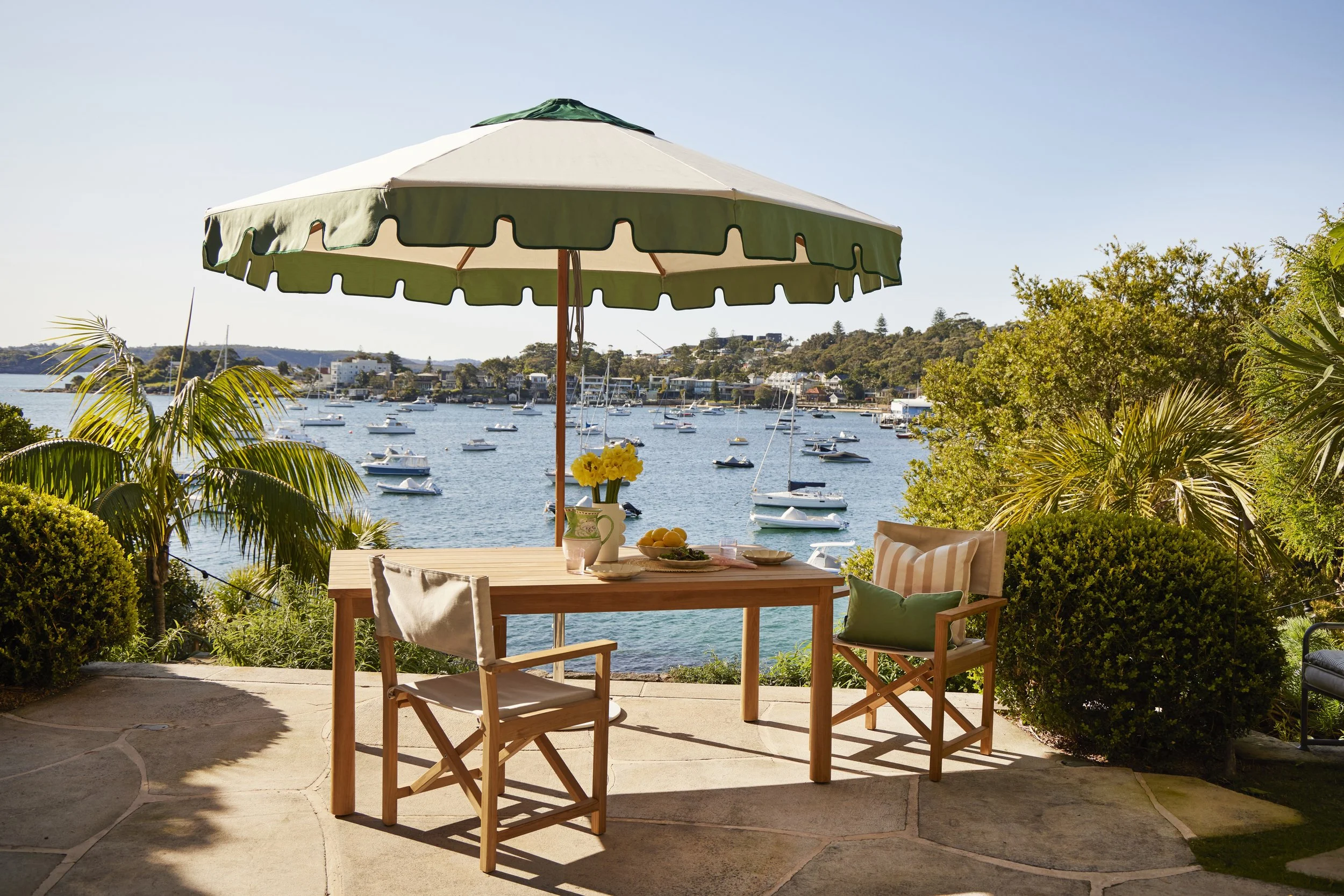 The best-selling Jardin umbrella marries vintage vibes with contemporary construction to add style to any outdoor space – from poolside, to patio or quiet garden nook. Photo: Jacqui Turk