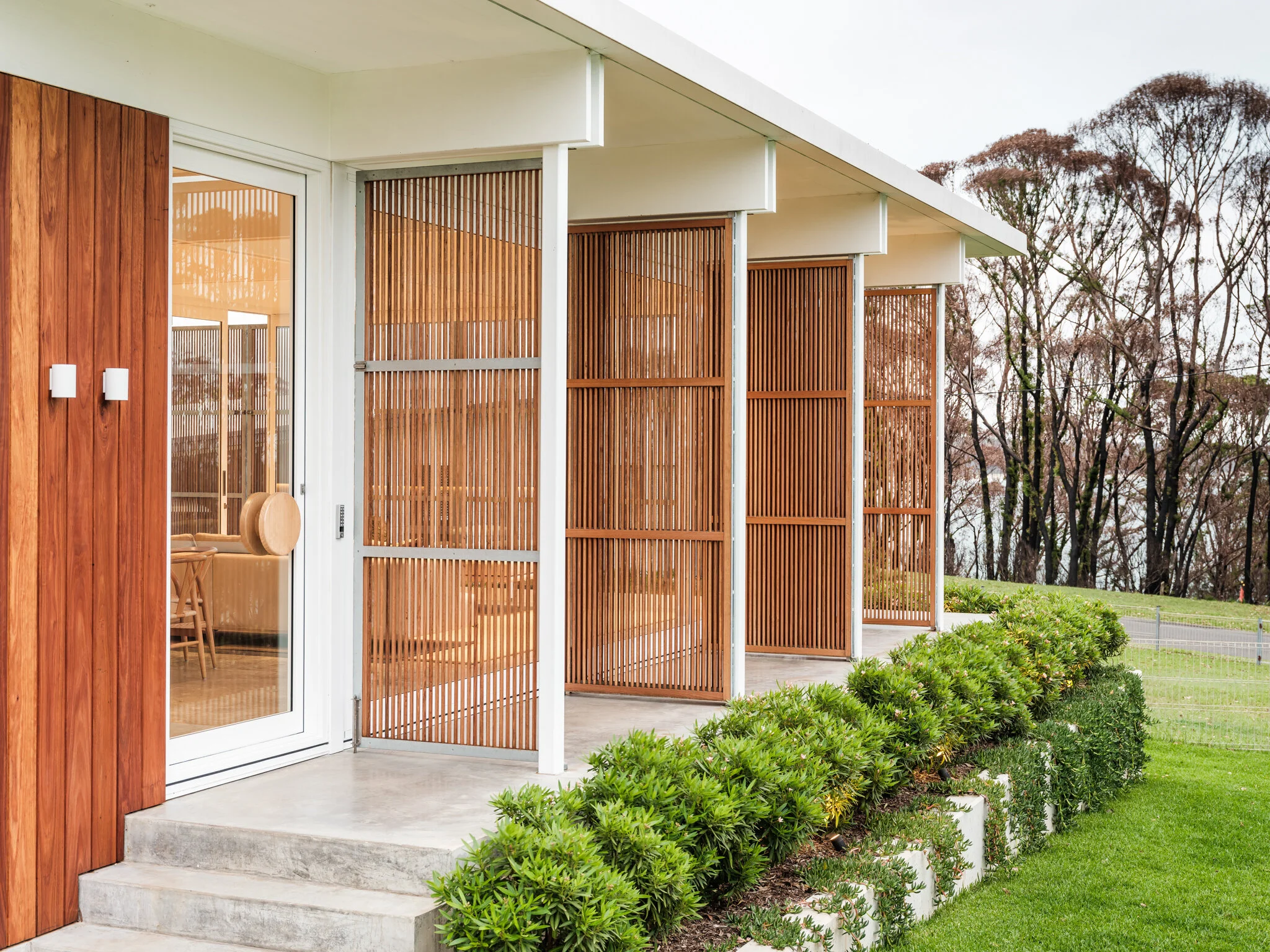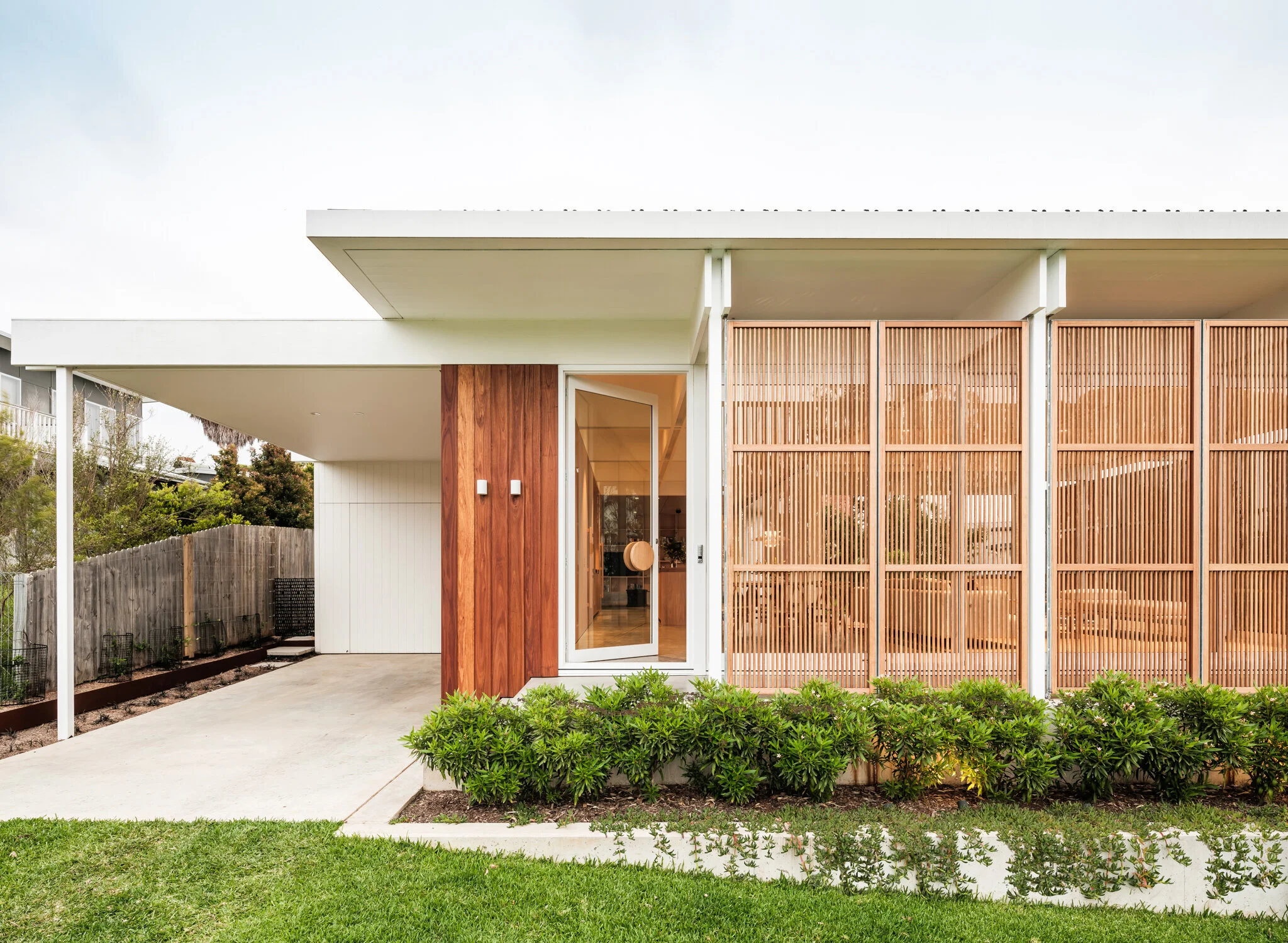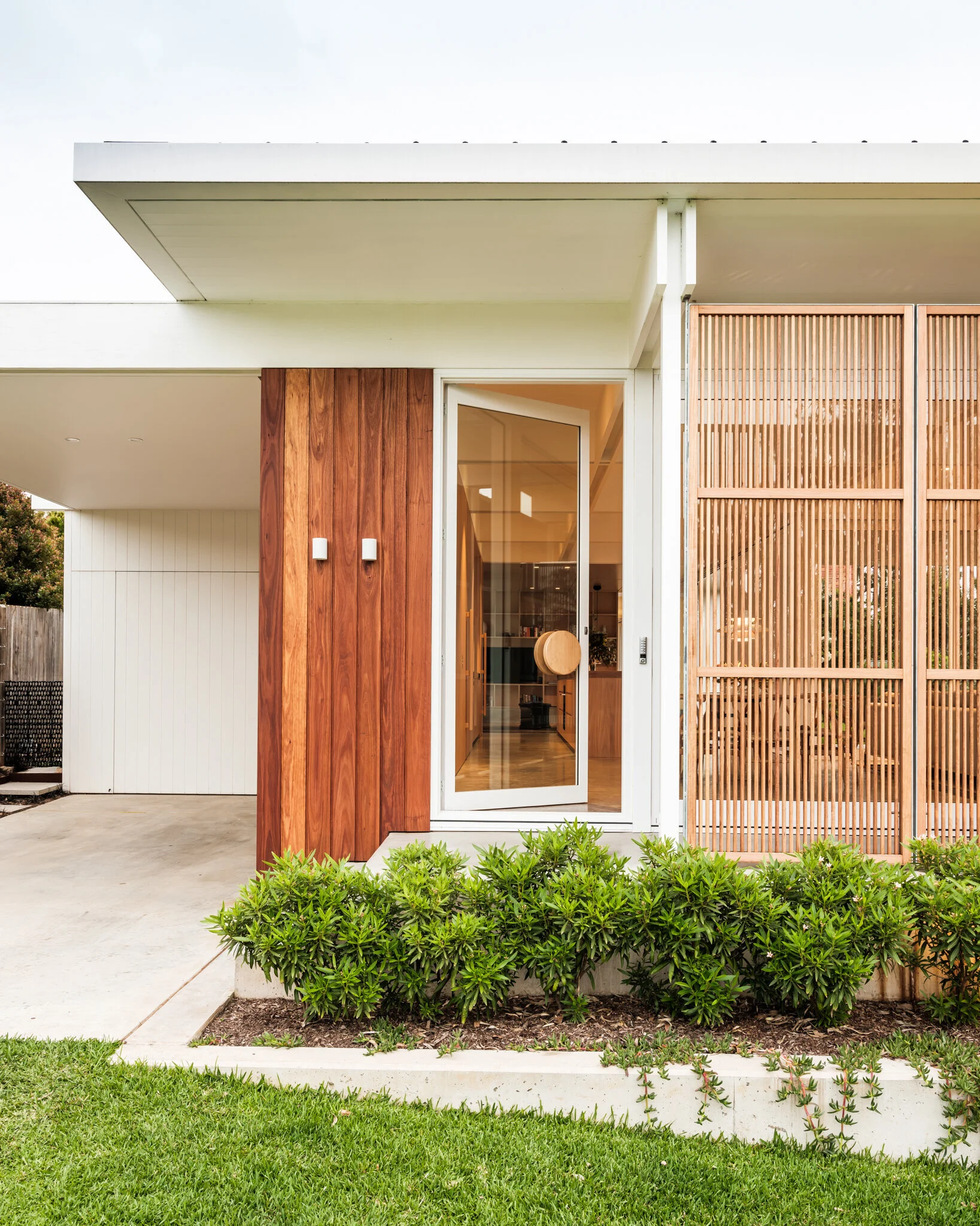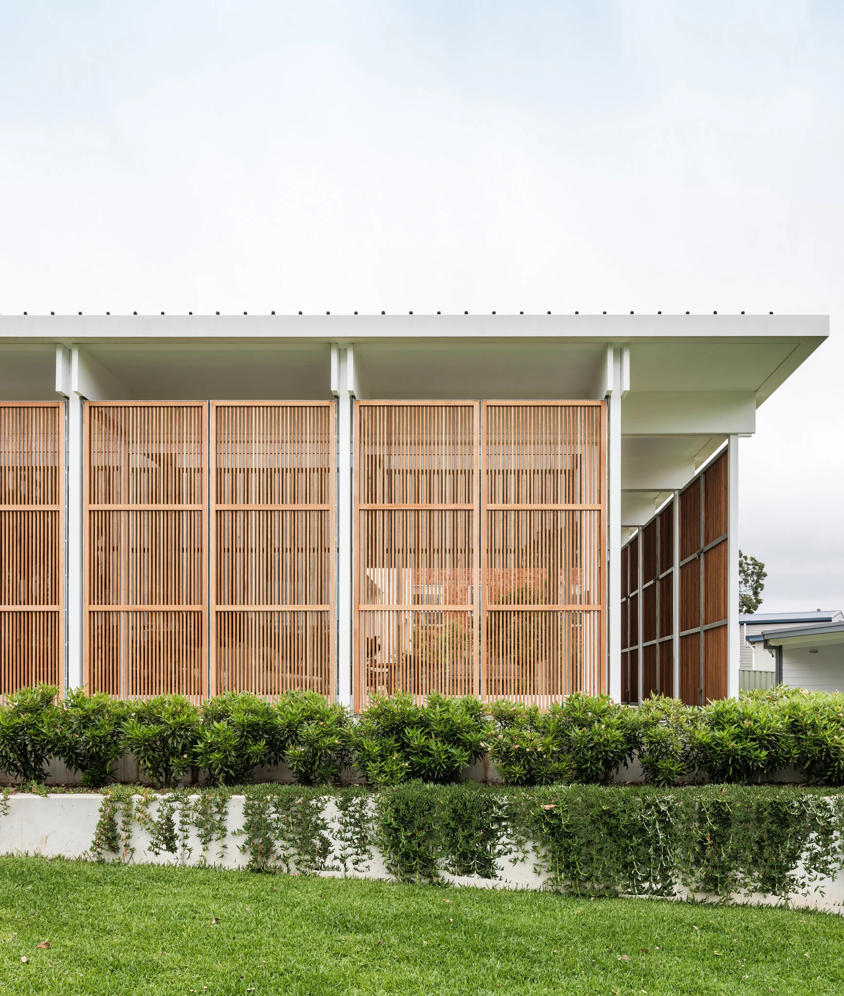 To overcome issues of privacy, operable timber screens were installed, and a traditional front terrace was placed at the rear.