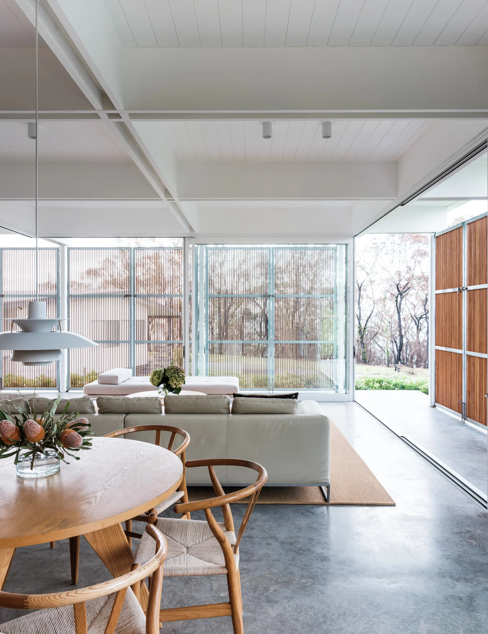Designed for architect Madeleine Blanchfield’s parents, the house has strong connection to the outdoors with the fully retractable doors with operable timber screens. Photo: Robert Walsh