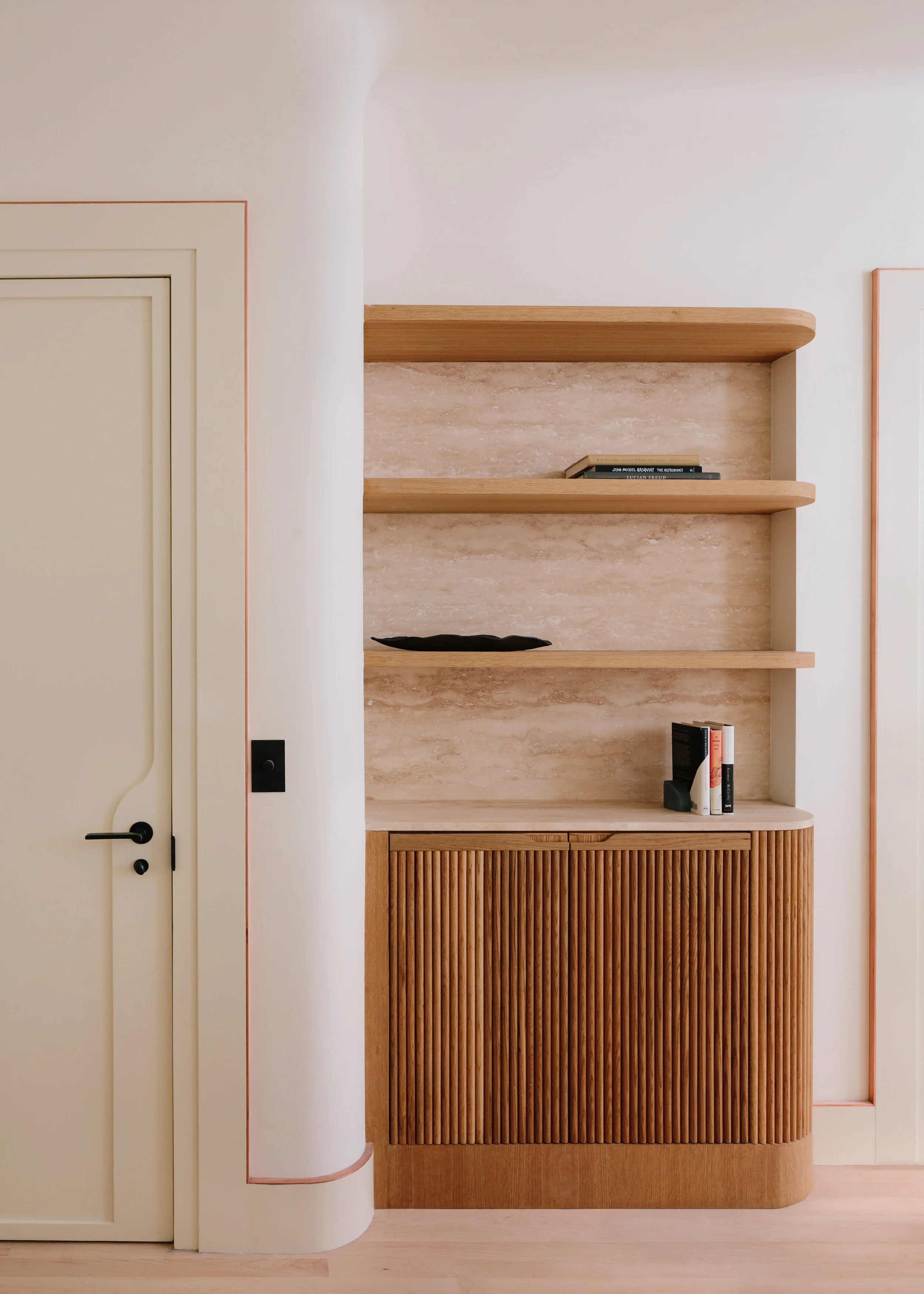 Bond Street Apartment by Home Studios is an ‘exploration of unexpected details’ in New York City’s NoHo neighbourhood—evoking Wes Anderson-esque curves and colour palette.
