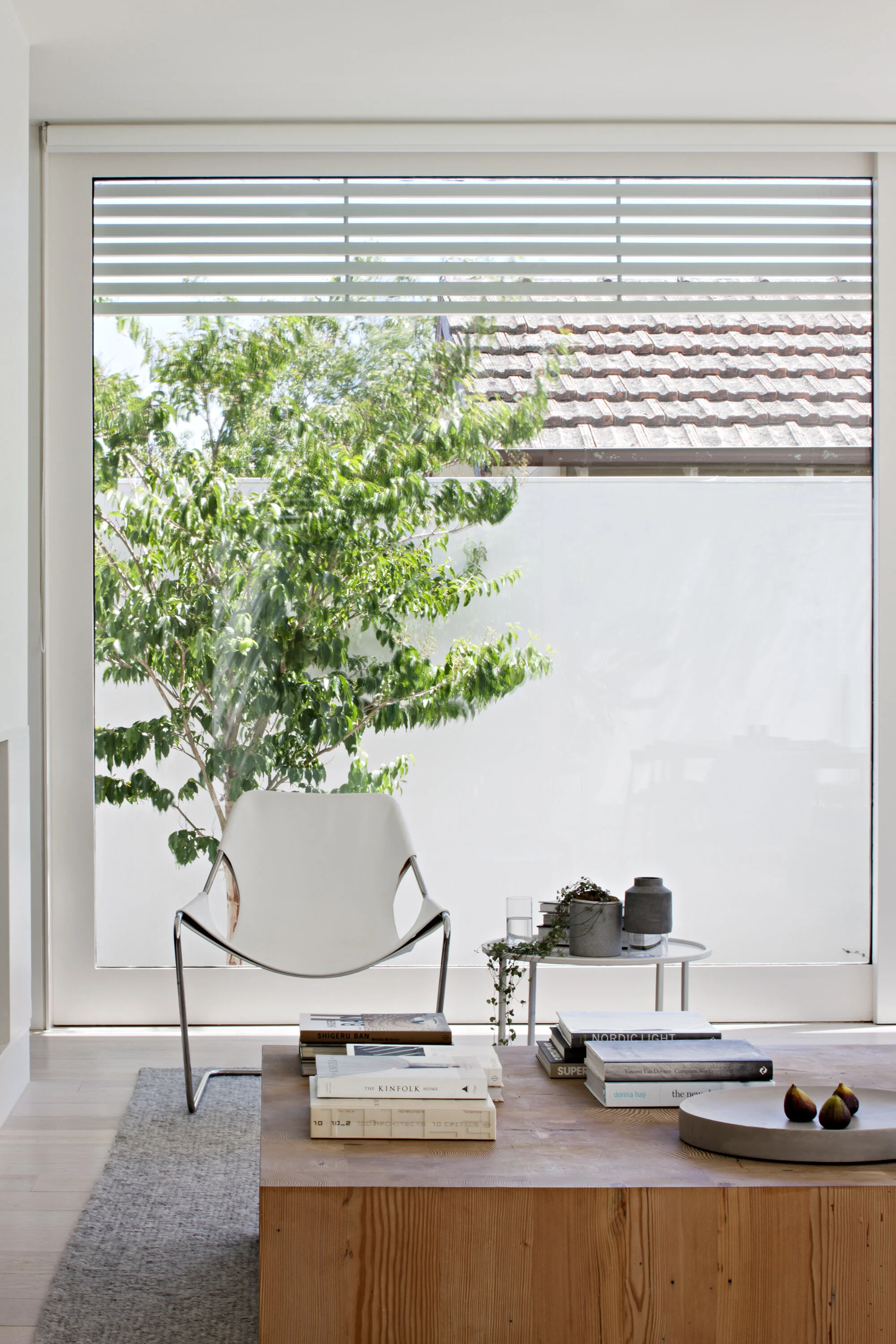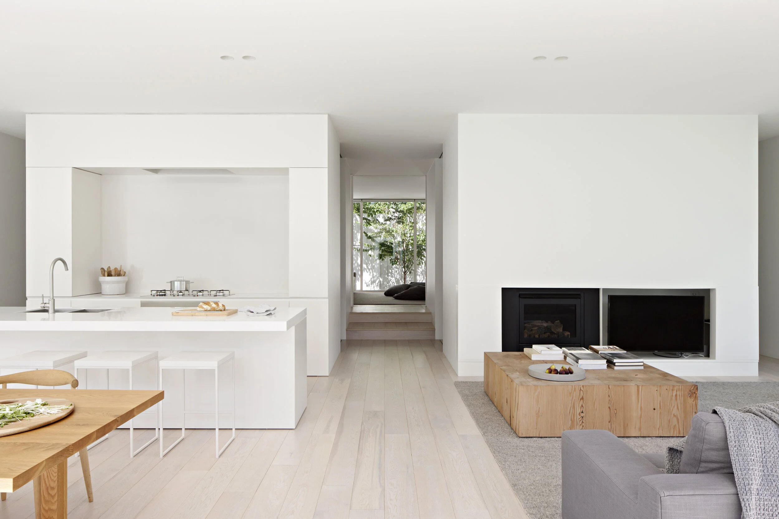 The design of Bourne Road Residence is a lesson in simplicity and restraint, with a modest and subdued white palate carried throughout the spaces, which keeps the interior lines clean, while dictating the overall simple and clean aesthetic of the home. While the living areas such as the dining, living and cooking spaces are all completely open and connected to the internal garden, the private living zones are cleverly and purposefully concealed from interior sight lines. Further connections are made between the internal garden and the space around the house, providing a layering of landscape and surrounding built form.