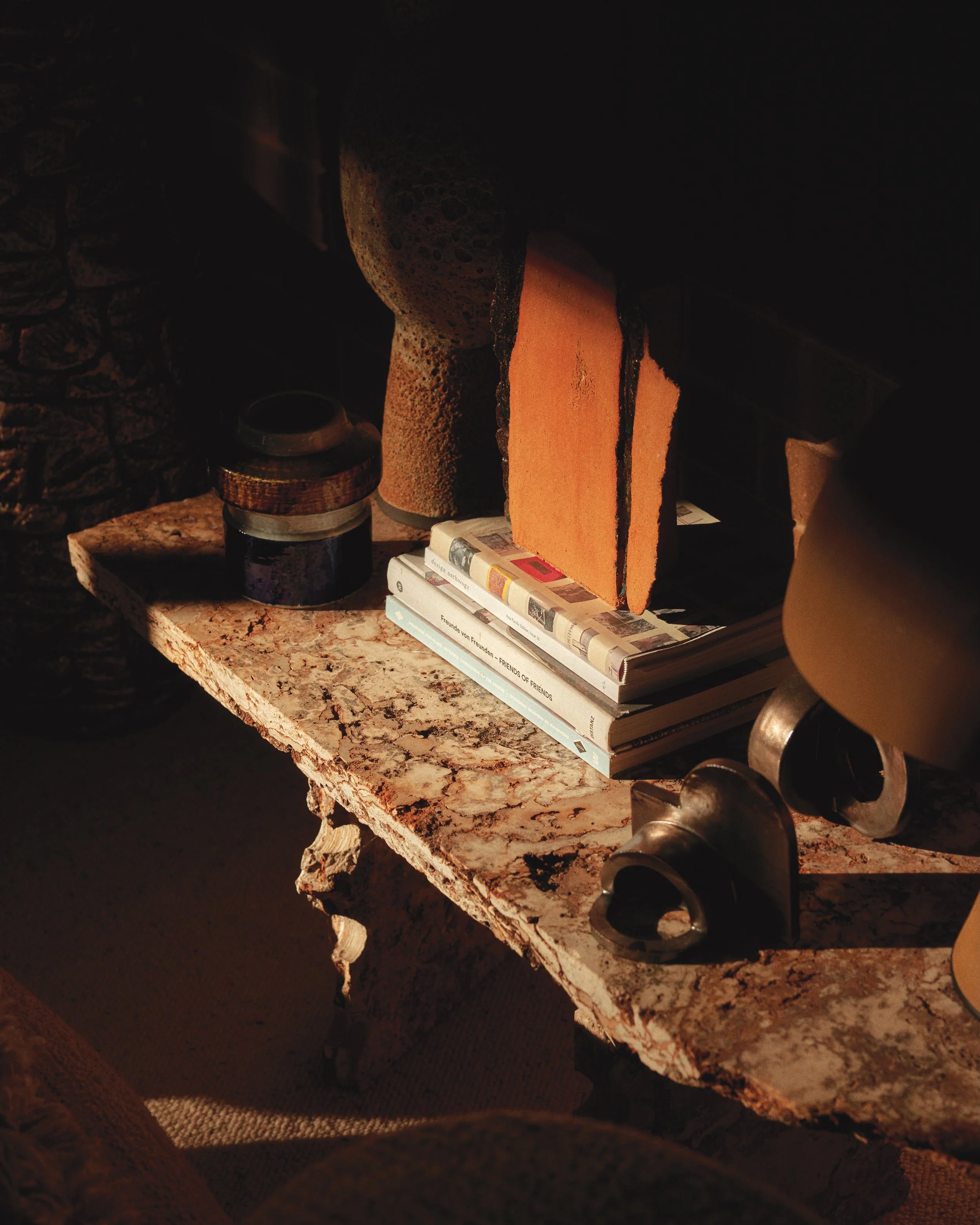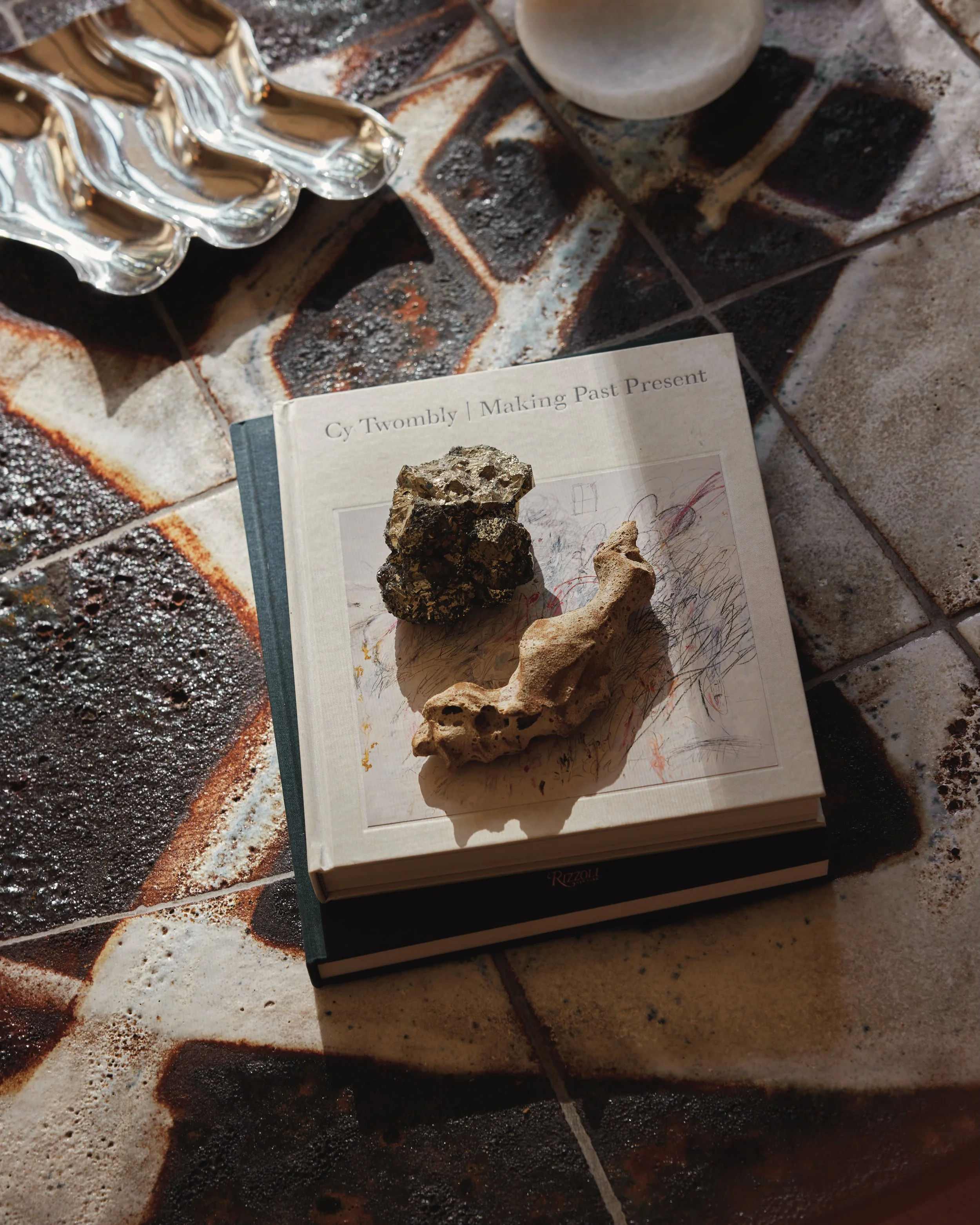 A coffee table vignette that artfully balances texture and tone.