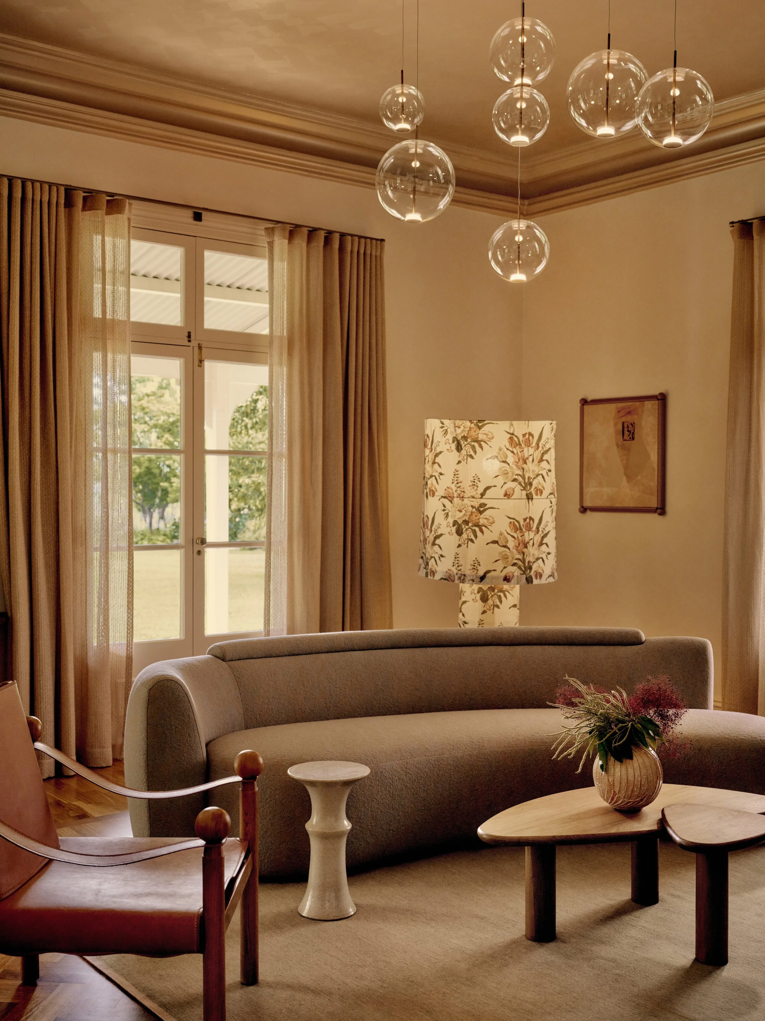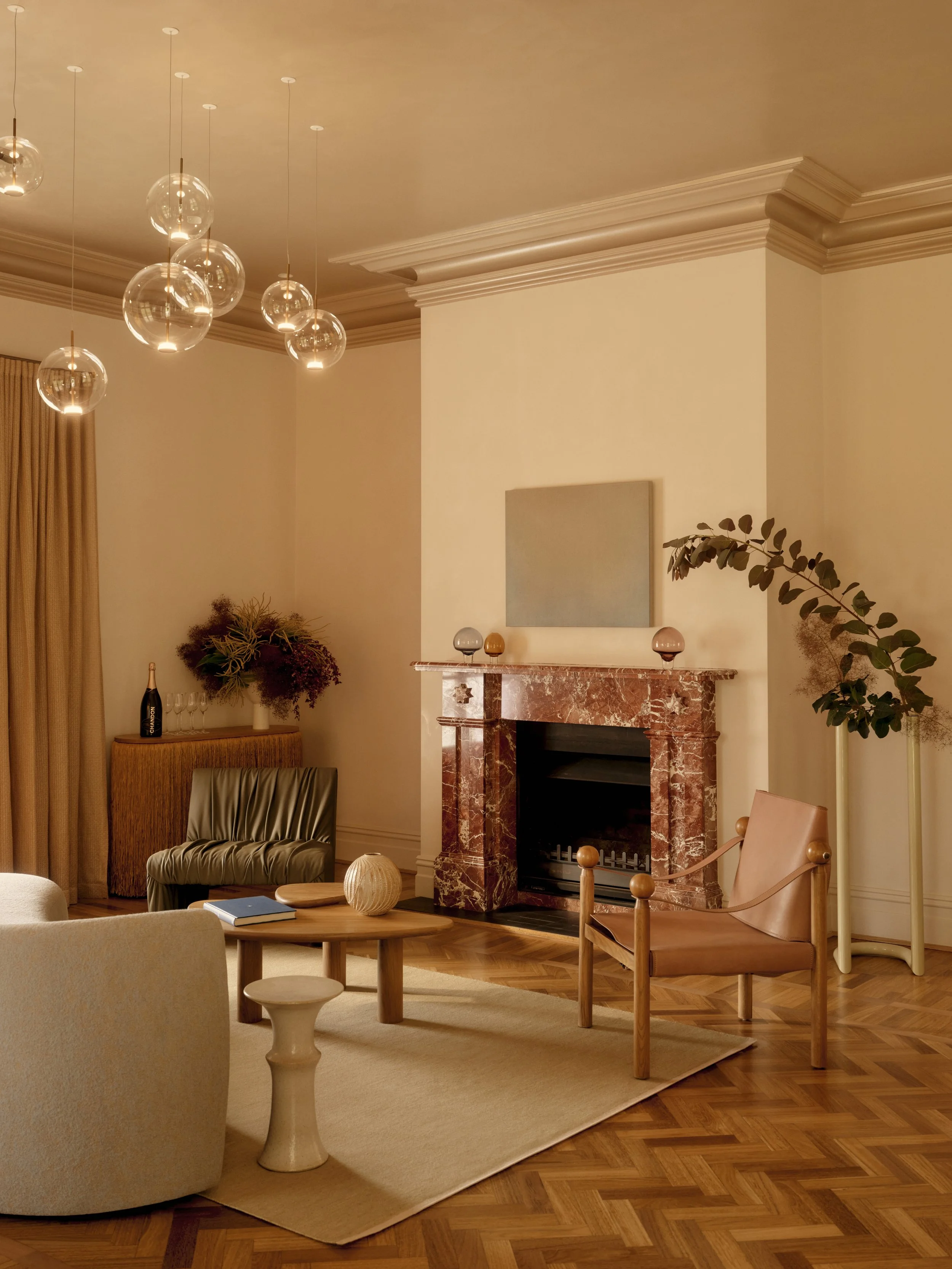 A warm interplay of heritage and craft unfolds in the Green Point Lounge at Chandon Homestead, where sculptural furniture, custom lighting and layered textures echo the richness of Yarra Valley’s landscape.