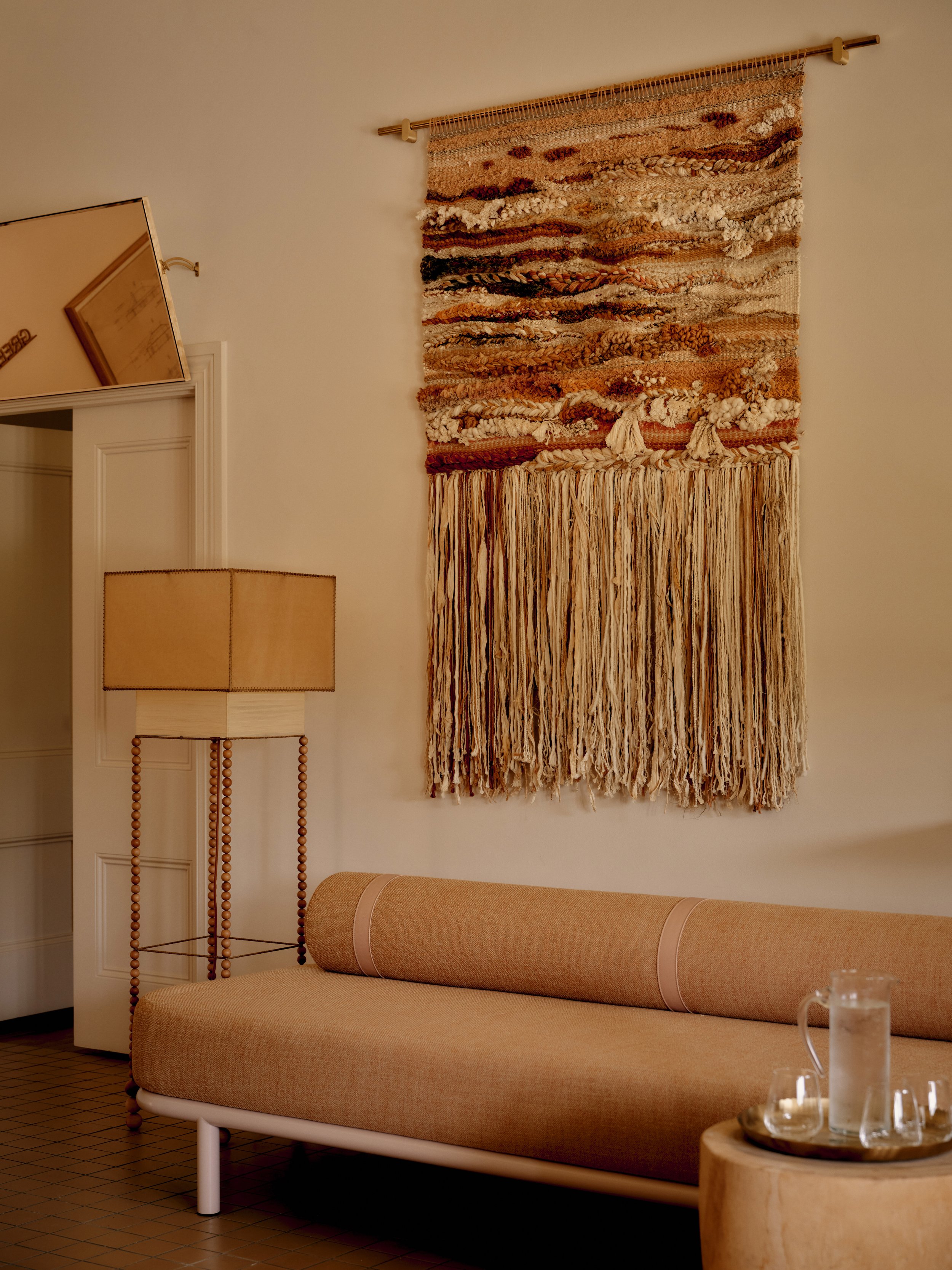 A custom handwoven wall hanging by Emma Shepherd depicts the local Yarra River.