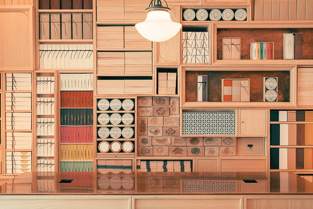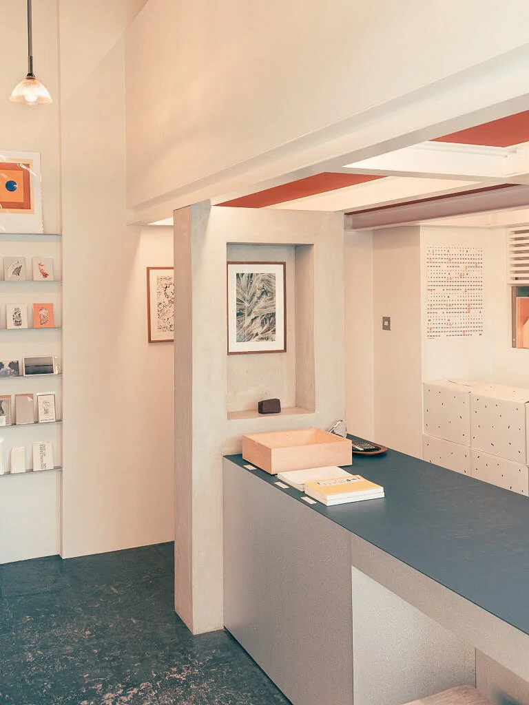 At the edge of Harajuku is Papier Labo, a pint-sized art supplies shop and design office. The shelves are lined with art postcards, calendars and notebooks, along with house-designed bookends, limited edition bric-a-brac and old curios like vintage Japanese type blocks.