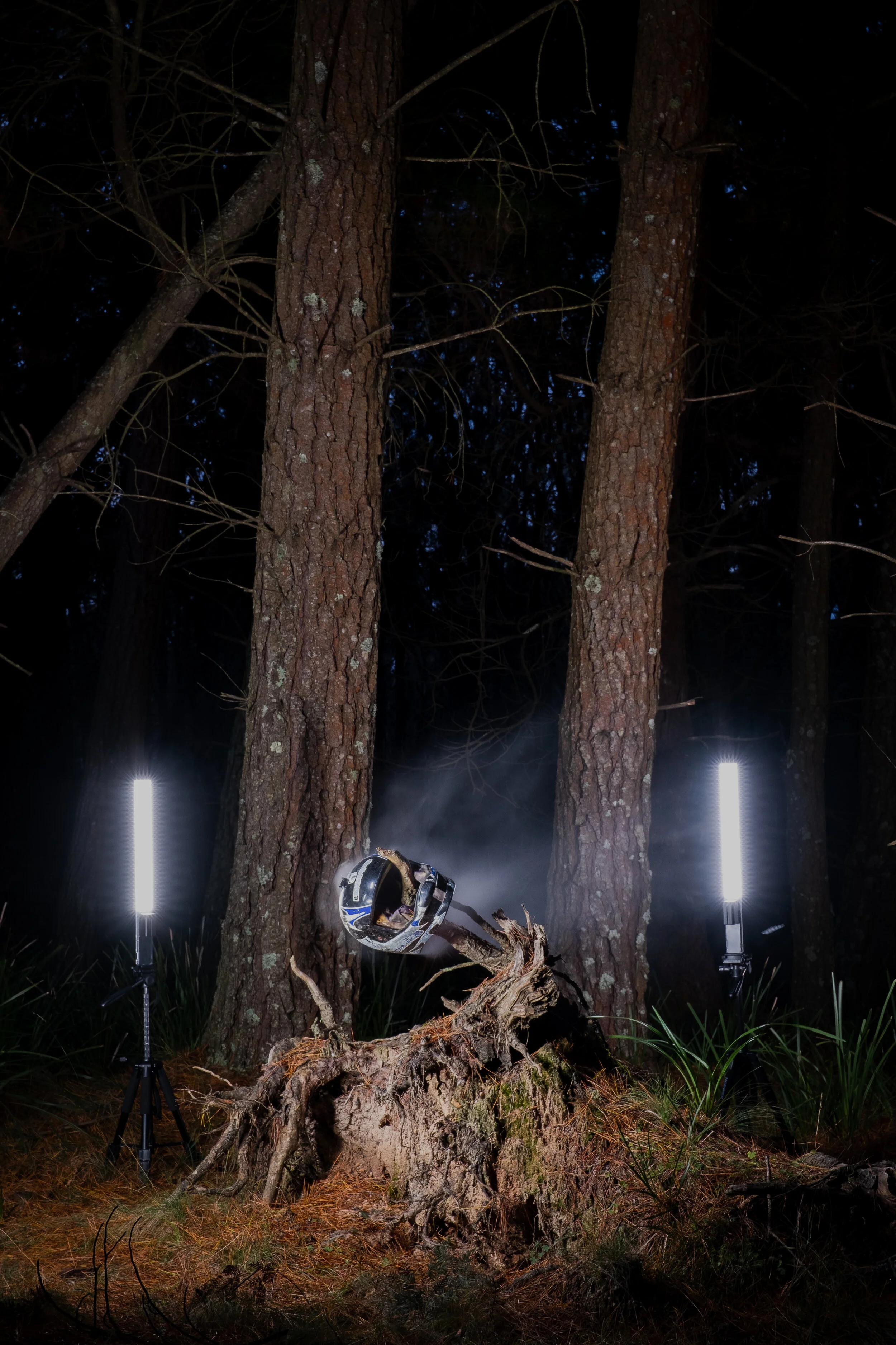 Andrew’s photography pulls us directly into their explorations. ‘I found incredible abandoned objects in the middle of Jenolan State Forest that I couldn’t stop thinking about and knew I had to document,’ he reflects. ‘My brain then concocted some weird story of an unknown civilisation discovering them and cataloguing them aeons in the future.’
