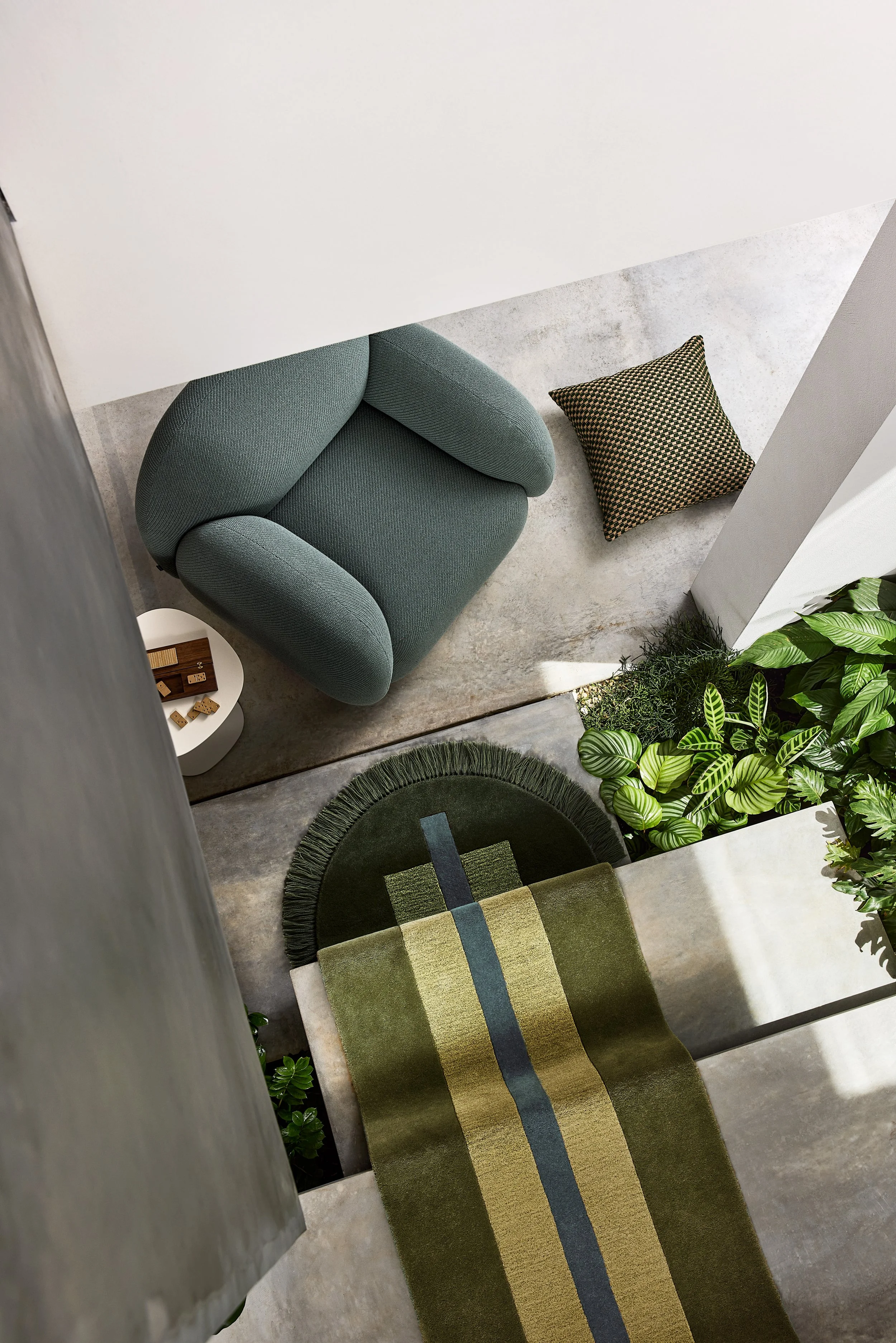 Sundae Armchair designed by Jason Ju and Overlay Rug designed by Danielah Martinez from DesignByThem.