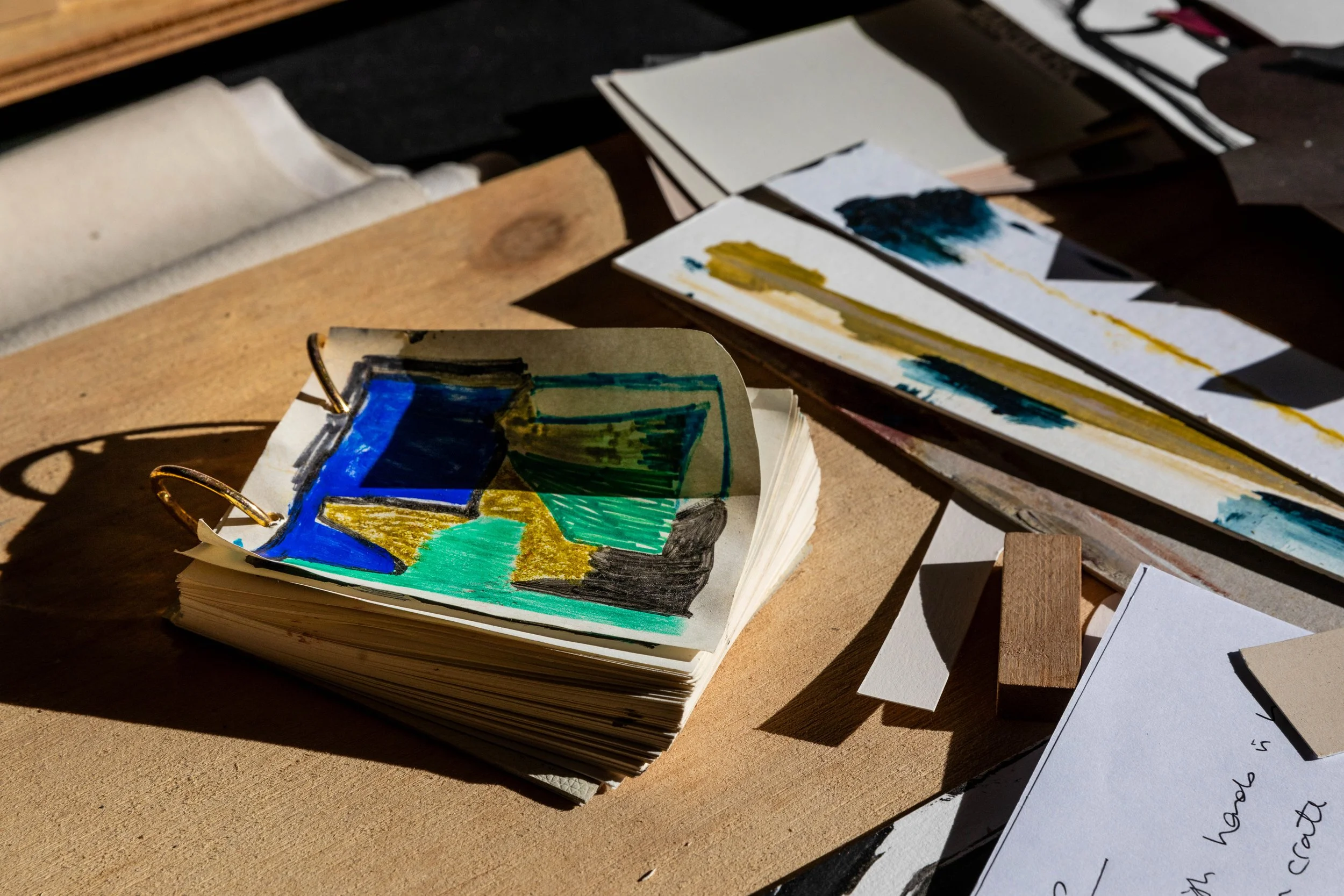‘I make a lot of experimental collages and paint sketches and shapes from these often make their way into my paintings'.’