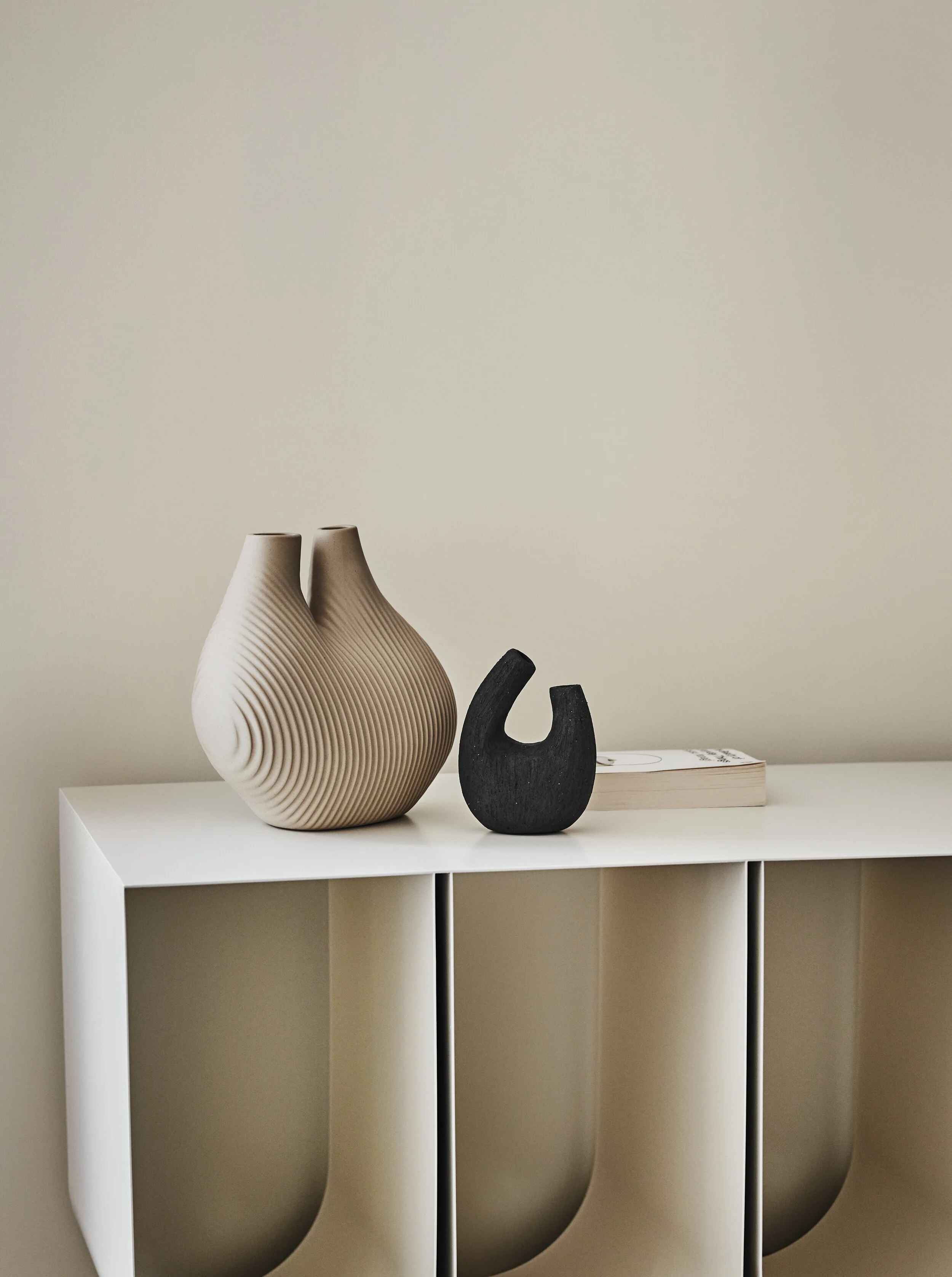 Dulux Colour Forecast 2022 – Restore palette. Curved bench by Kristina Dam, In Good Company; Hay W&S Chamber Vase in light beige, DesignStuff; Handbuilt Sculptural Vessel 25, Deborah Sweeney. Photo: Lisa Cohen. Styling: Bree Leech
