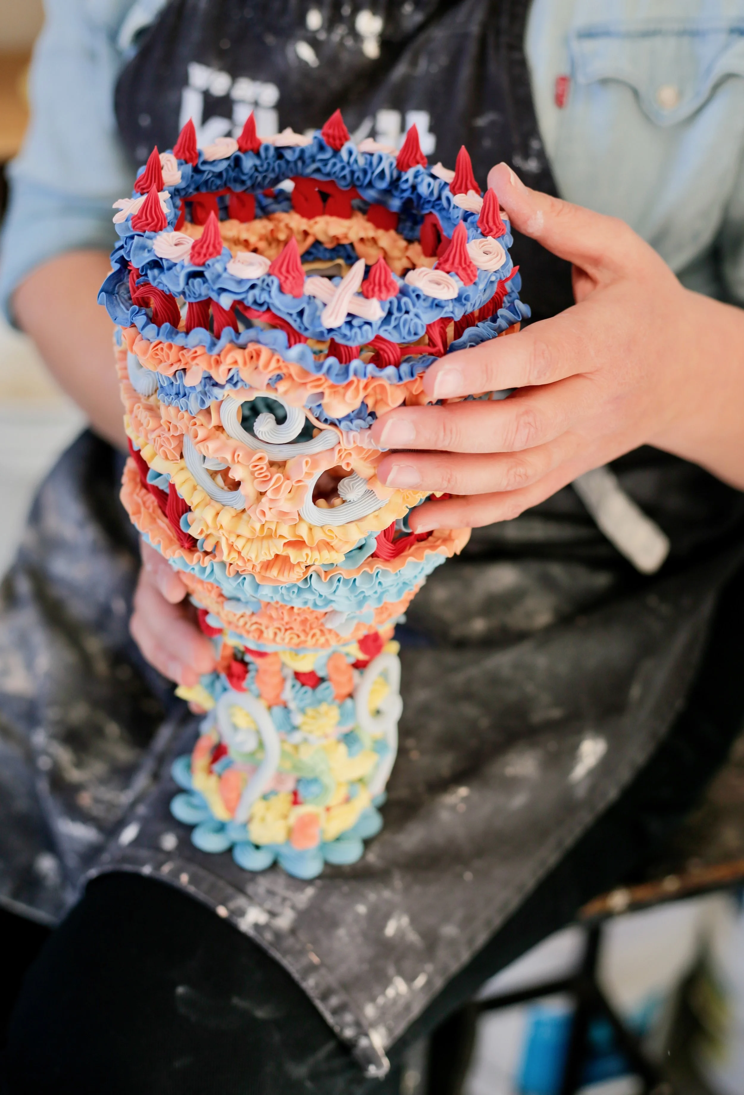 Sydney-based artist Ebony Russell creates decorative ceramic works in a rainbow of bright colour using cake-piping techniques, celebrating their beautiful imperfection.