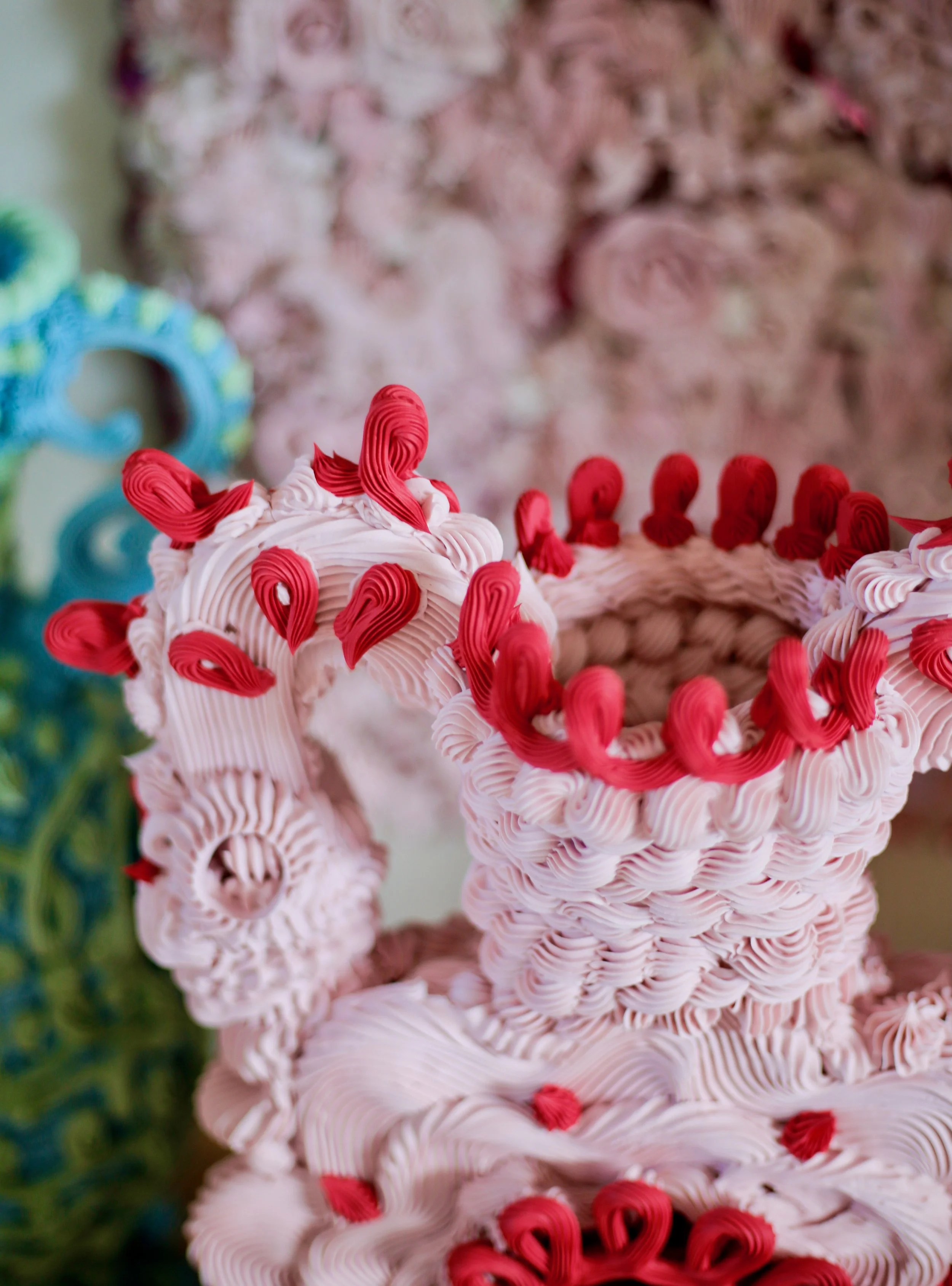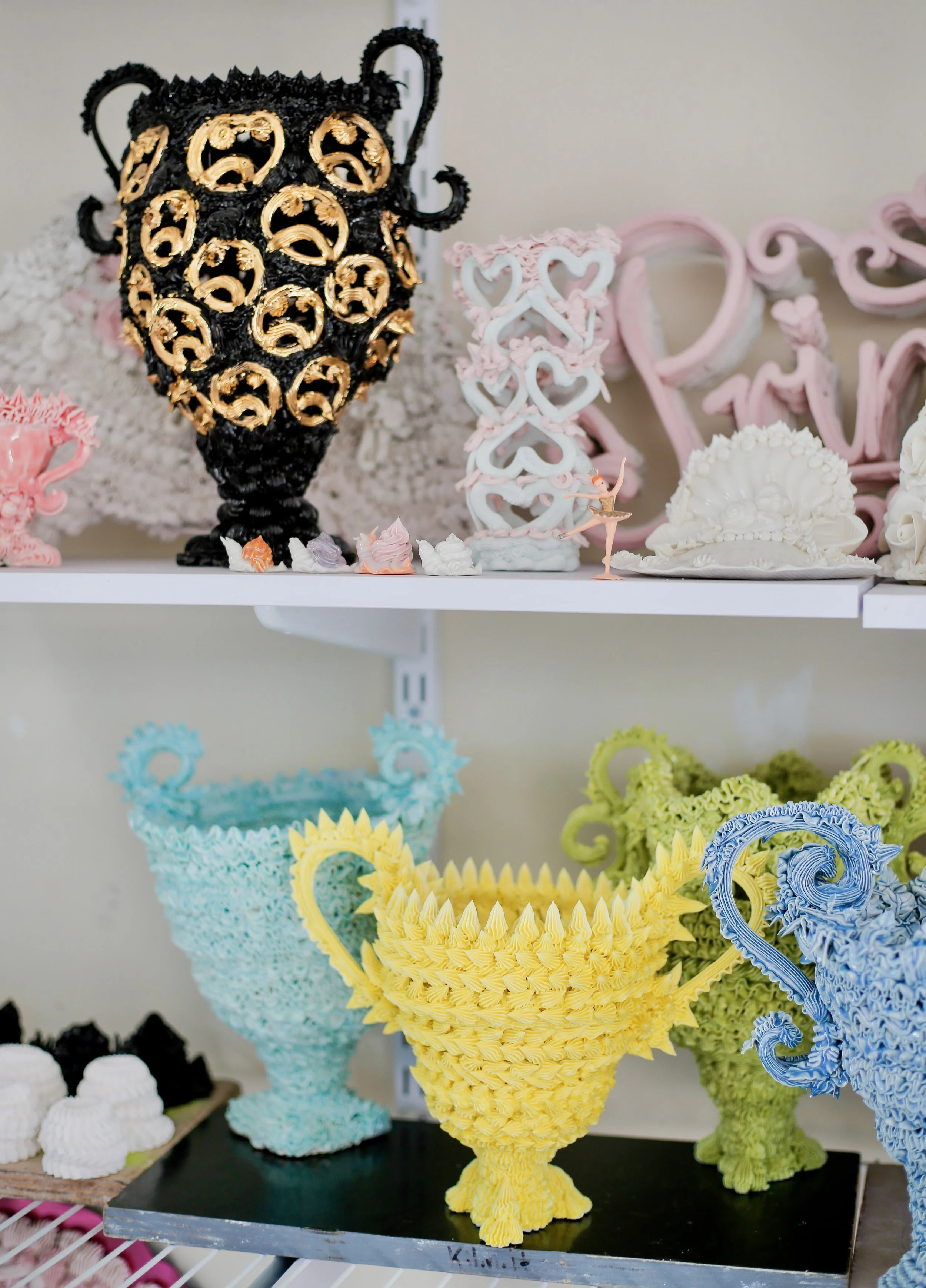‘Every piece has a story. I wanted to play with the hysterical, over the top forms and a nod to Rococo extravagance. Decoration is everything!’ says Ebony of her work for this year’s Sydney Contemporary. Photo: Hande Renshaw