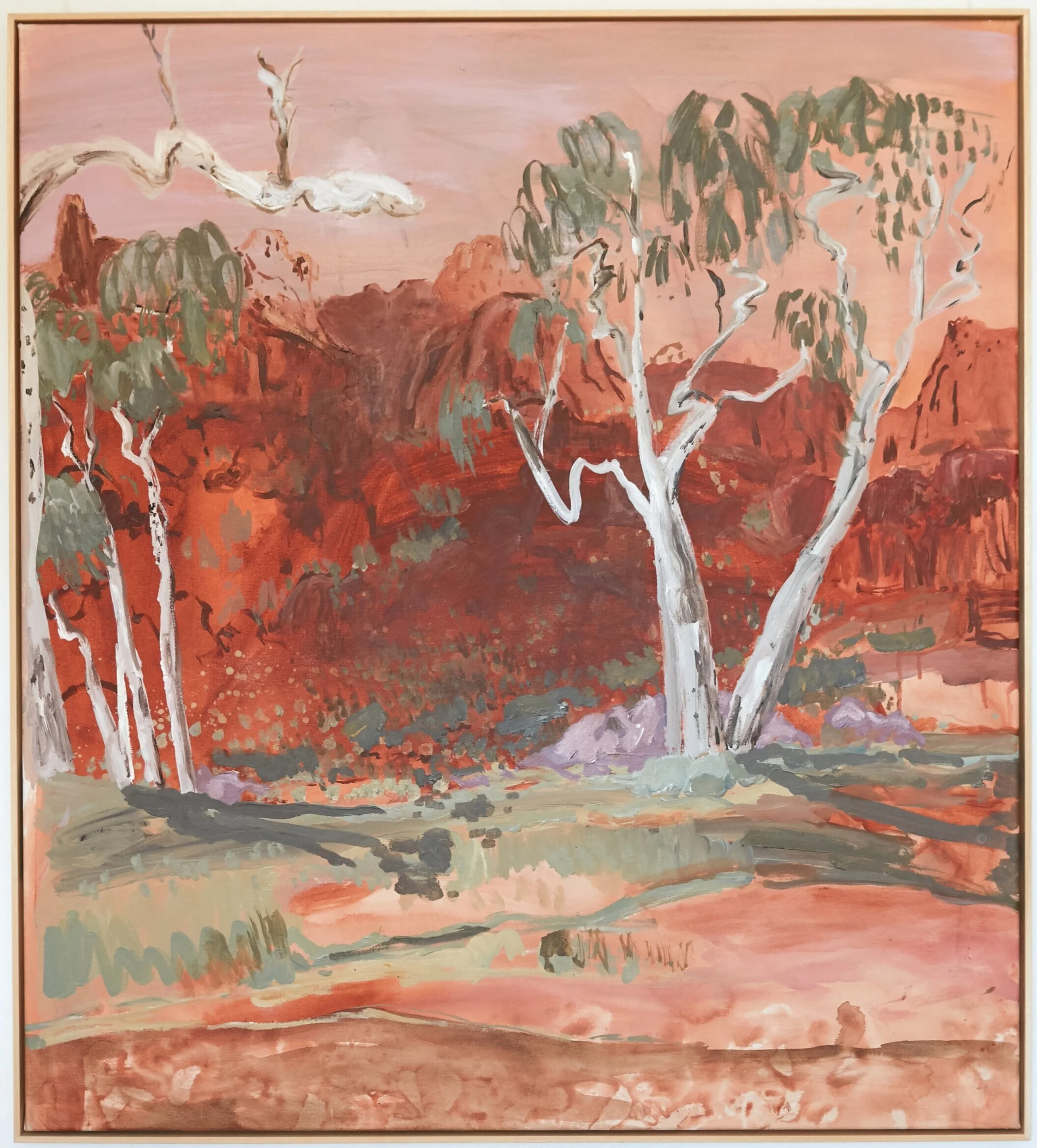 The collection includes work captured during the artist’s time traveling across Tyweltherreme (Ruby Gap), Tjoritja (West McDonnell Ranges), Wurre (Rainbow Valley) and Finke Gorge National Park during spring 2020.