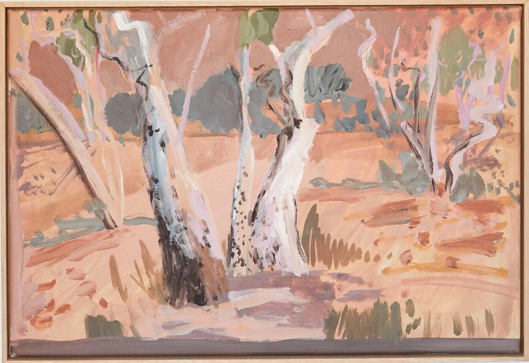 Emily Imeson uses the Australian bush as her studio. Parking her four wheel drive amongst the red earth and gum trees, she invites the rich and earthy colours of the landscape onto her canvas. Emily continuously takes herself into the land, exploring ways to translate her experience into paintings.