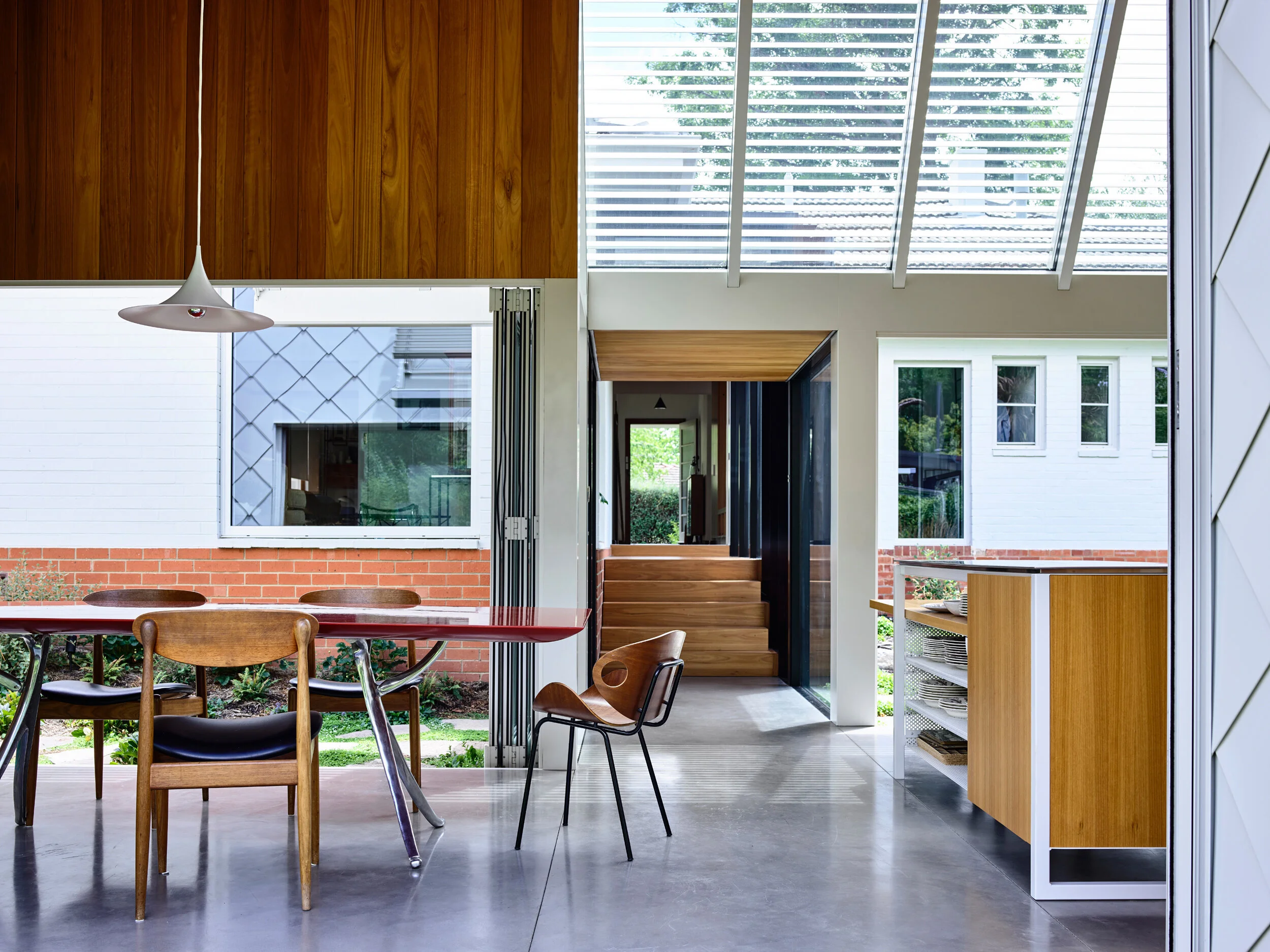 The house is opened up to the outdoors and celebrates the exterior, creating a discussion between the old and the new. Photo - Derek Swalwell.