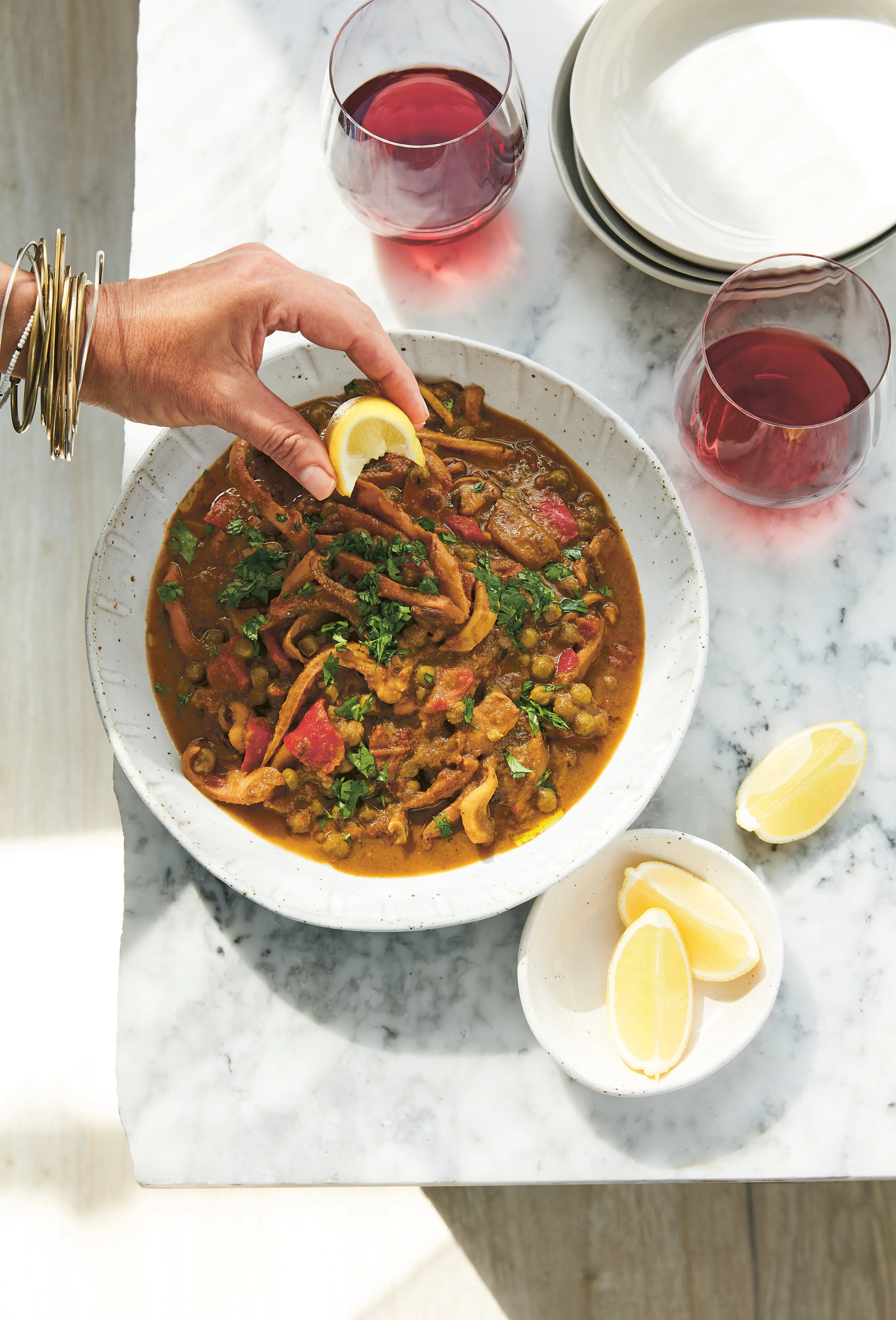 Tagine of squid, tomato and red capsicum from Everything I Love to Cook. Photo: Petrina Tinslay