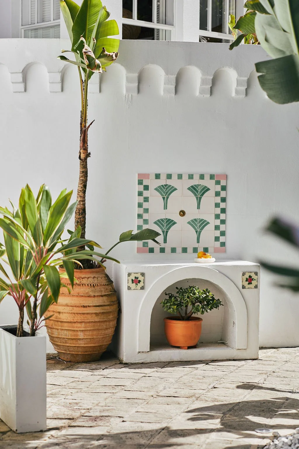 The tile designs are a thoughtful representation of Raes’ rich history and an ode to the legacy of the Wategos family, the designs feature a banana palm as a central motif that symbolises the hotel's evolution from untamed bushland to a luxury travel destination. Eytan has also weaved in Art Deco and Mediterranean references into the design, drawing inspiration from the hotel's architectural elegance.