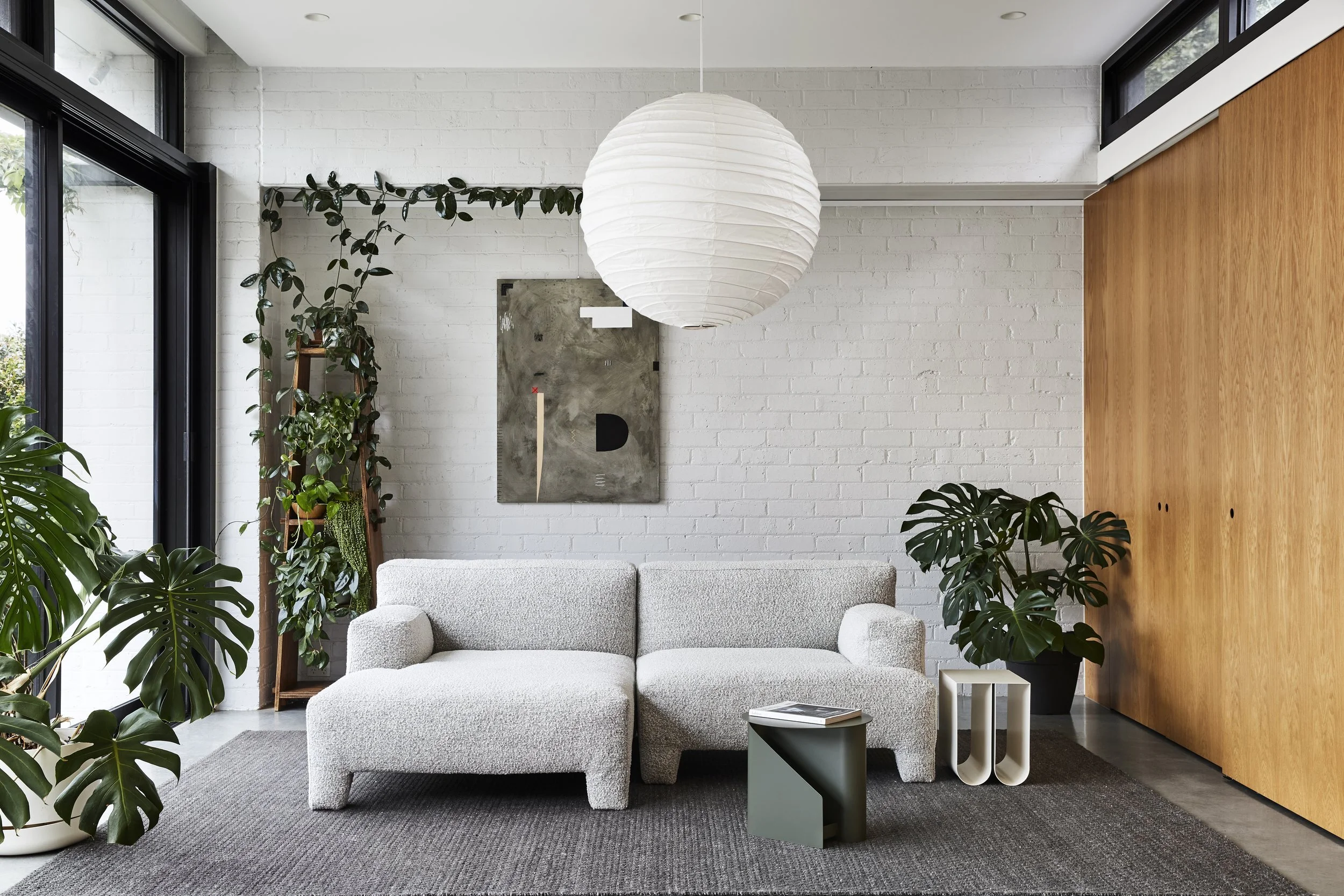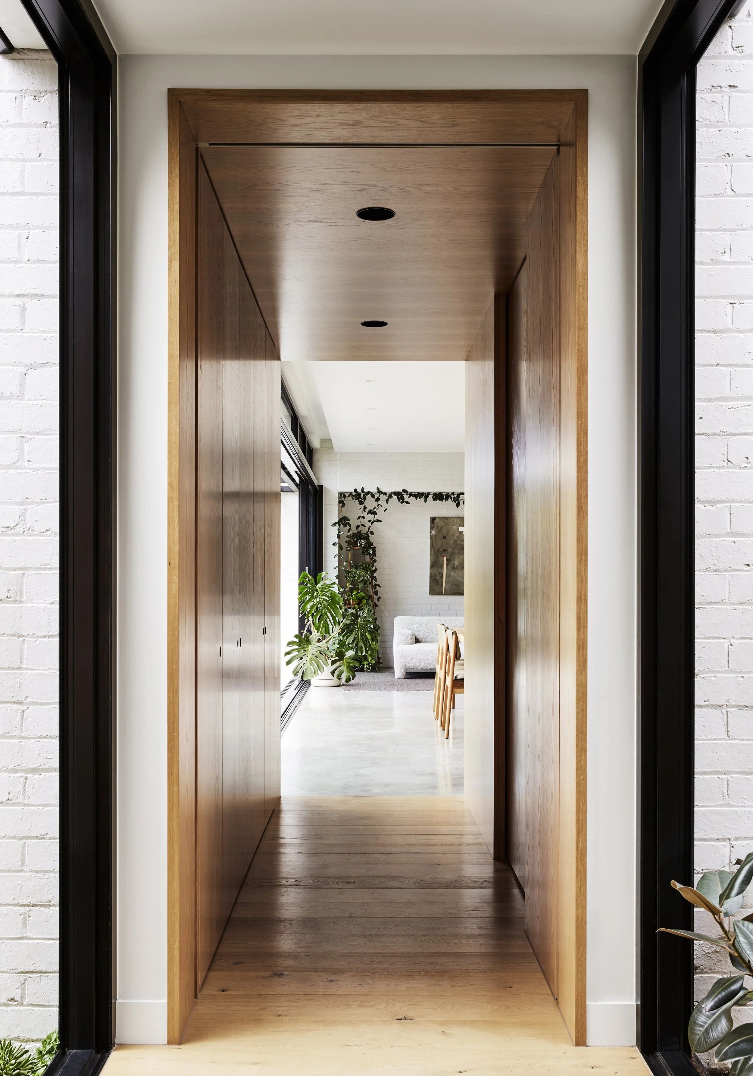 Materiality for the project is inspired by the original brick and timber construction but differs in colour selection to differentiate old from new. The restrained palette is a backdrop to the lives of the client and the beautiful plants inside and outside the building.