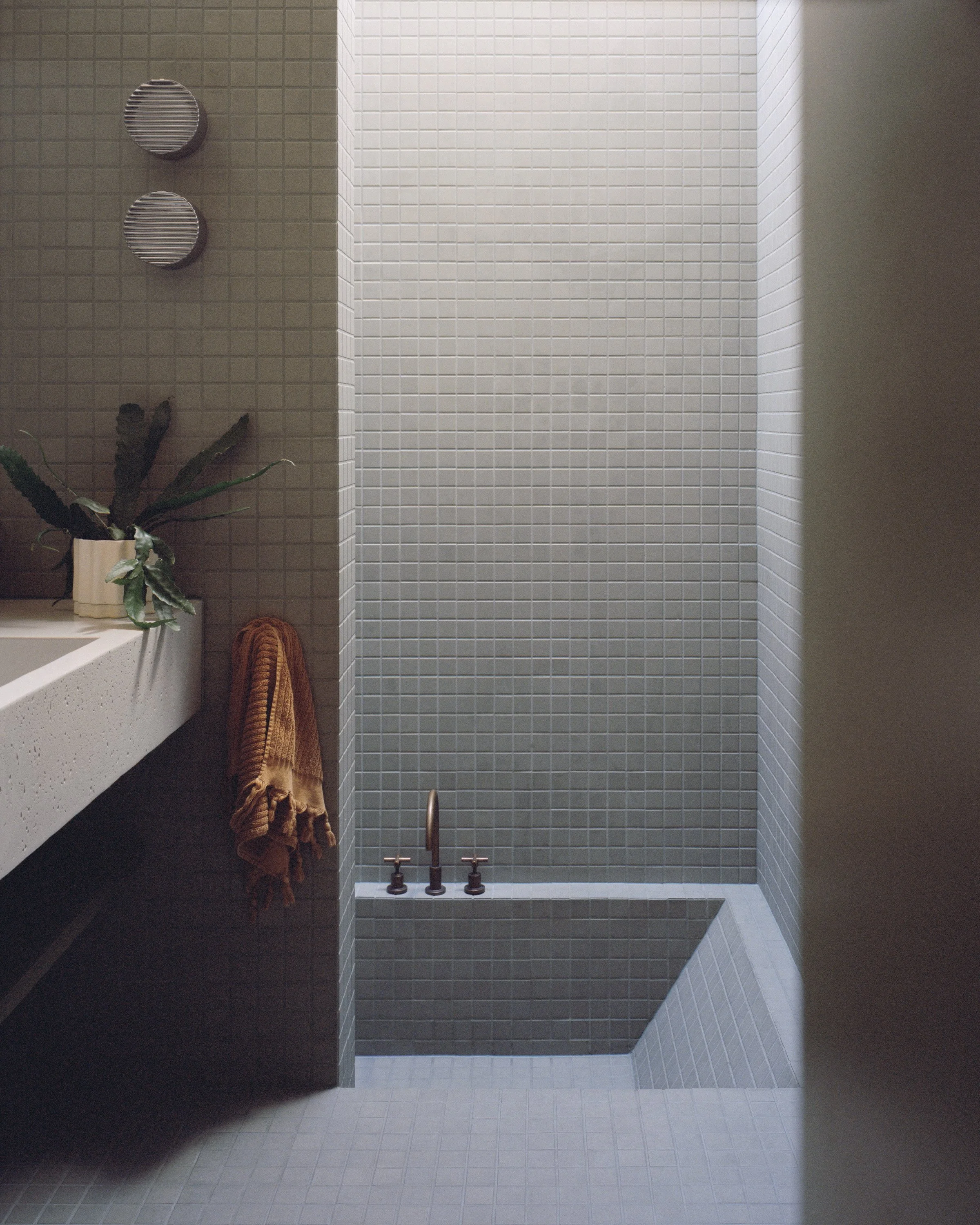 The towers' distinctive muted pink breeze block exterior is a contrast against the lightness of the timber weatherboard of the original cottage—despite their solid appearance, the breeze block towers foster a stronger connection to nature.