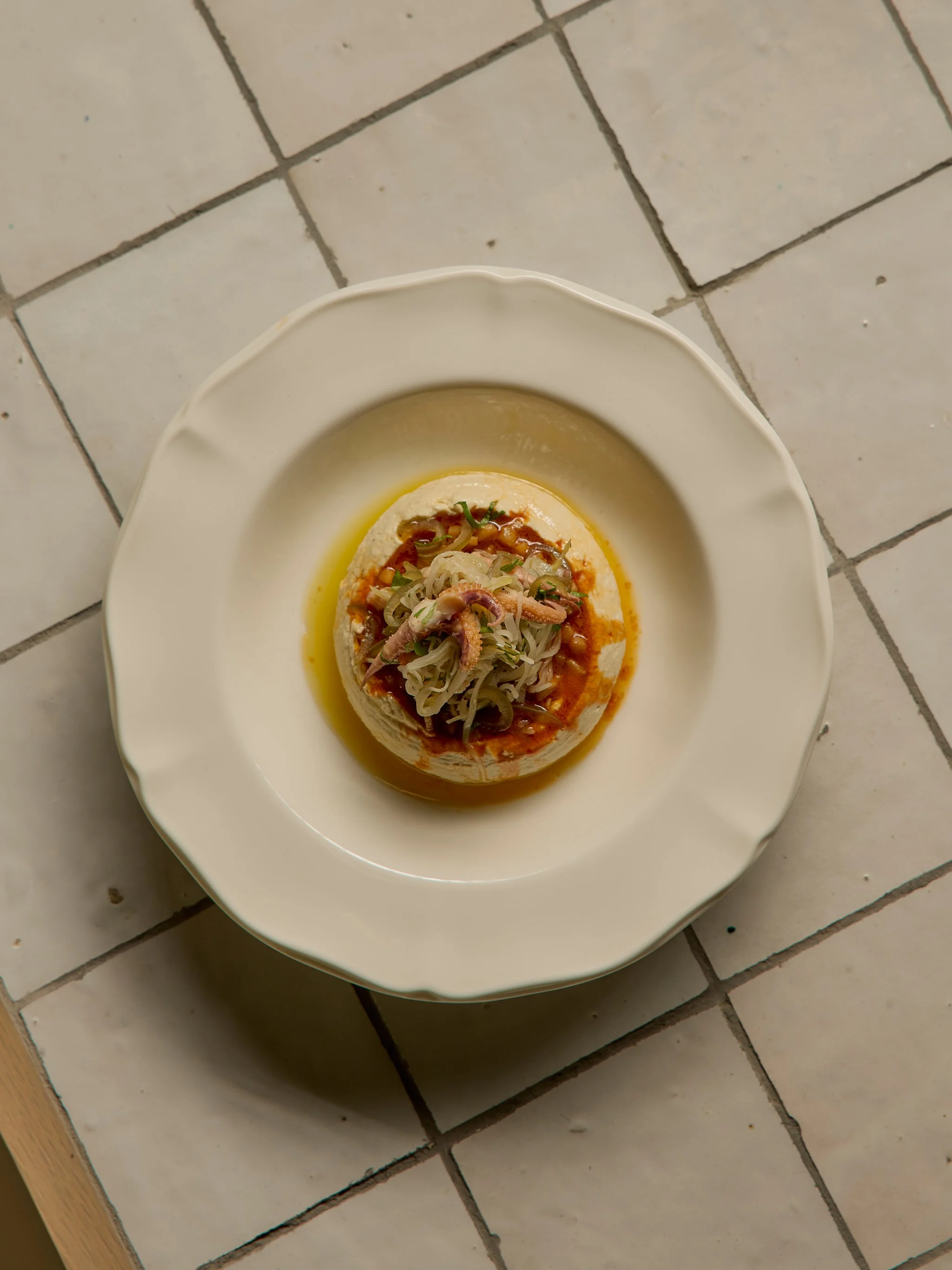 Hummus done the Golden Avenue way—smooth and citrusy with a hit of heat from the grill, made from Ord River chickpeas and topped with smoky chermoula cuttlefish.