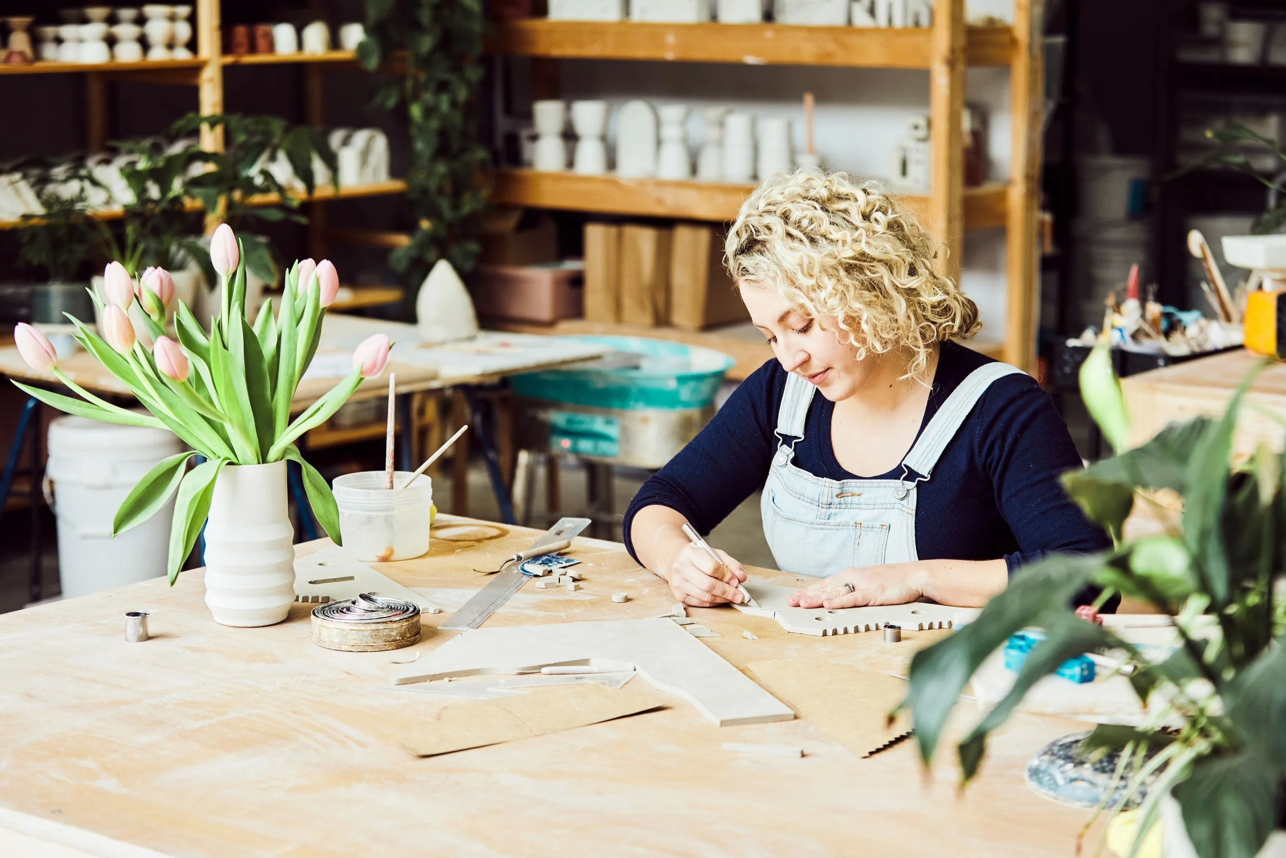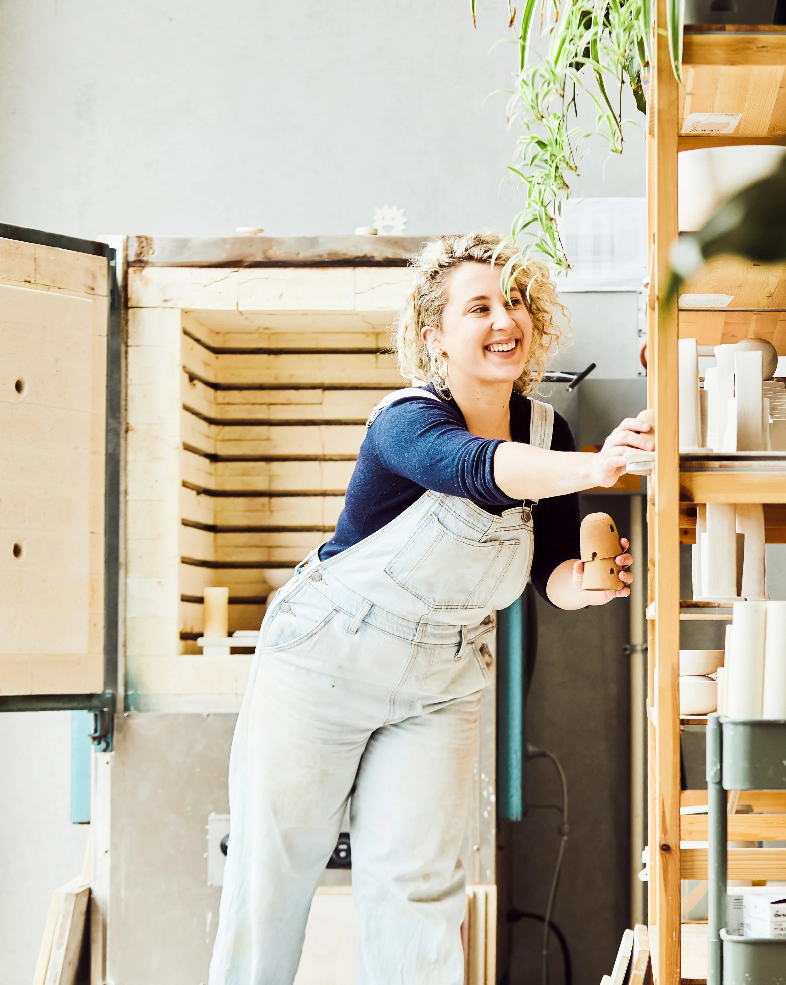 Her work is all about timing as working with clay is not an immediate process. Grace gets started at her studio by prepping her clay and letting it rest to partially dry, making it easier to sculpt. While the clay rests she splits her time between social media, admin or packing the kilns, glazing, and designing. The majority of her days are spent spinning the wheel, smoothing out her crafty clay sculptures.