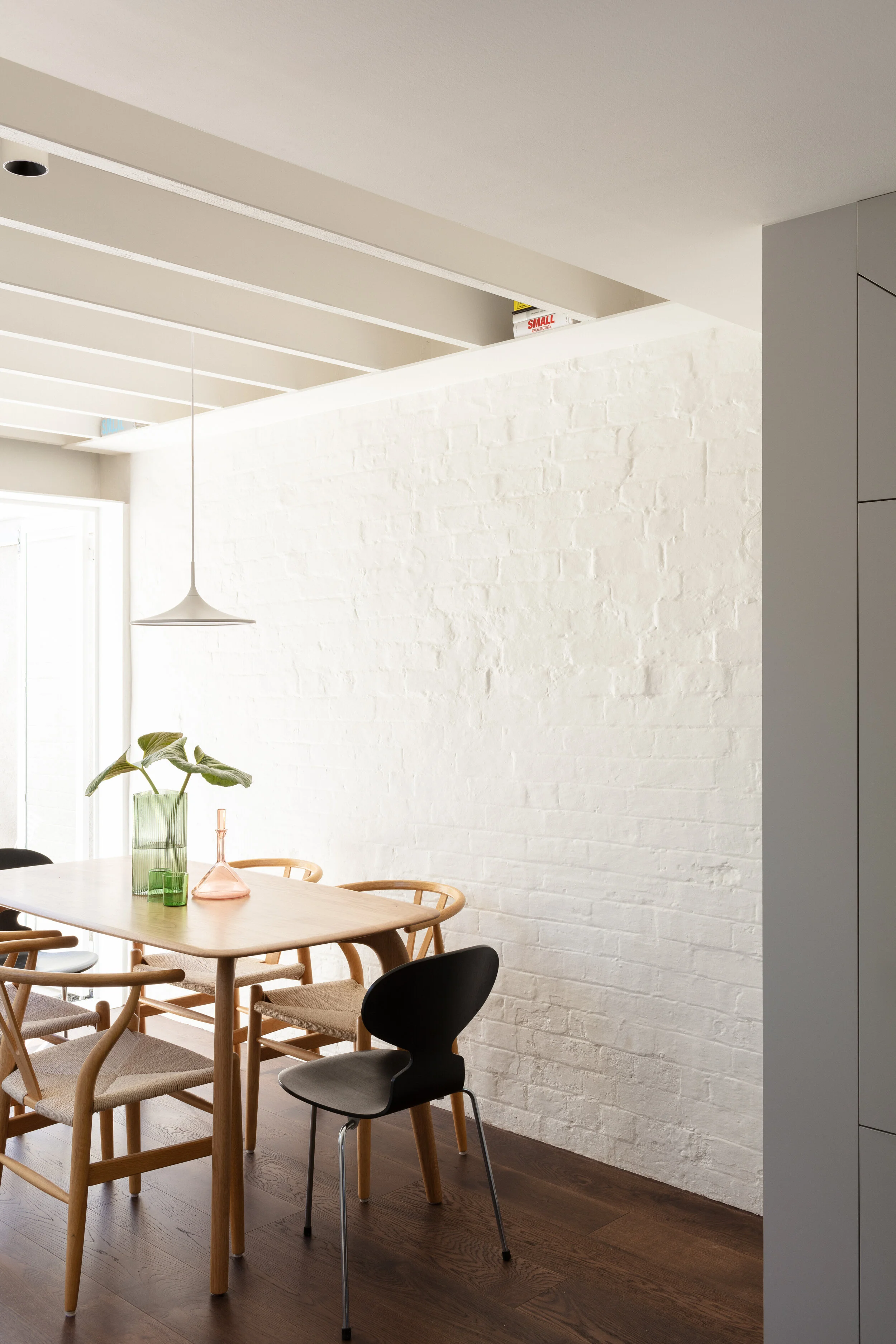 In reconfiguring and extending the original home on site, Architect George deliberately designed the exterior singular in colour and minimal in form, so as to not further overwhelm the surroundings. The interiors were also developed in response to the home’s urban environment and the existing structure, resulting in a predominately white palette.