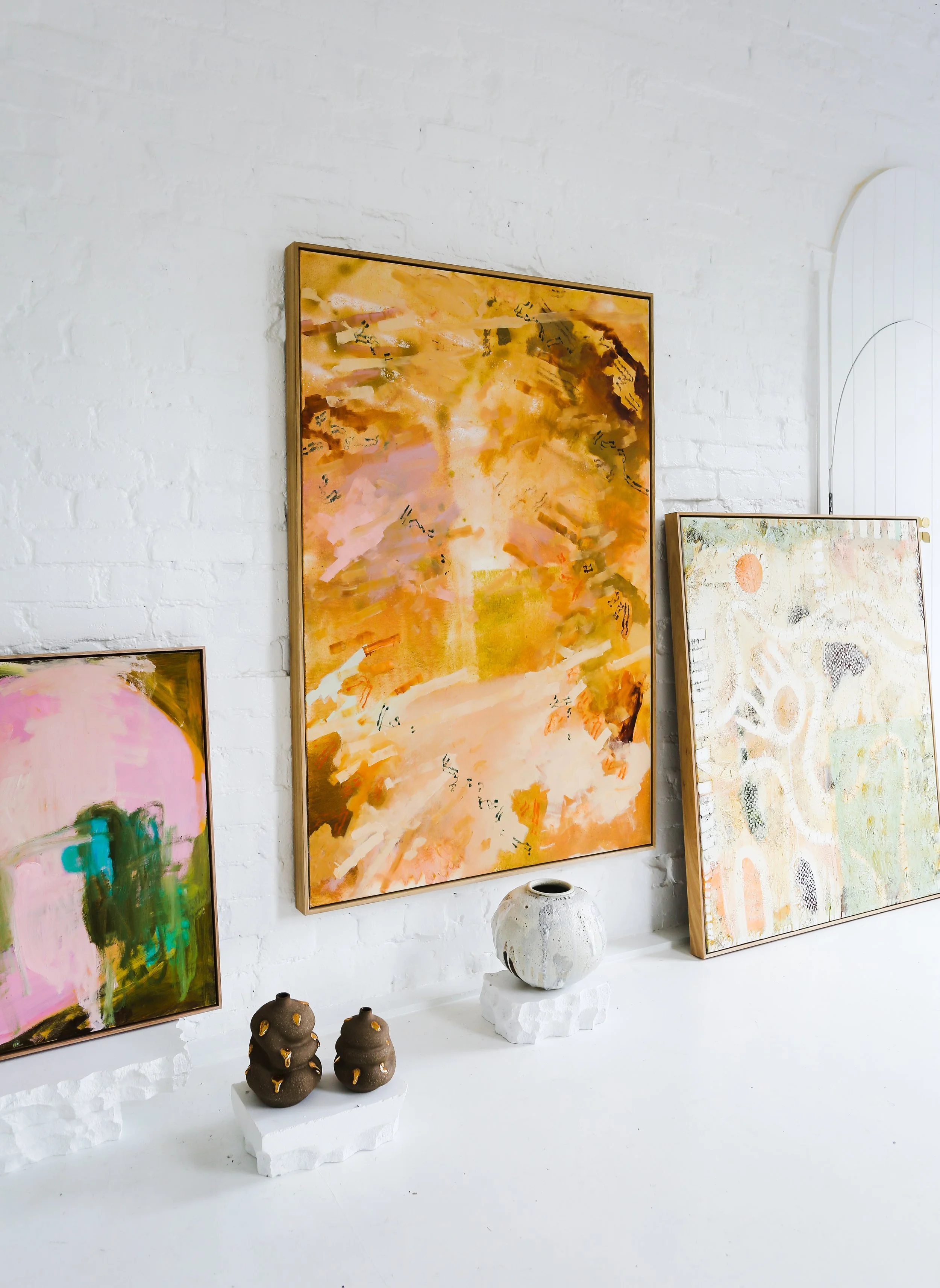 Pictured from left: Reflection by Meg Gallagher, Twenty Three by Anthony Stephens & Cermics by Jessica Choi from Eun Ceramics. Photo: Hande Renshaw
