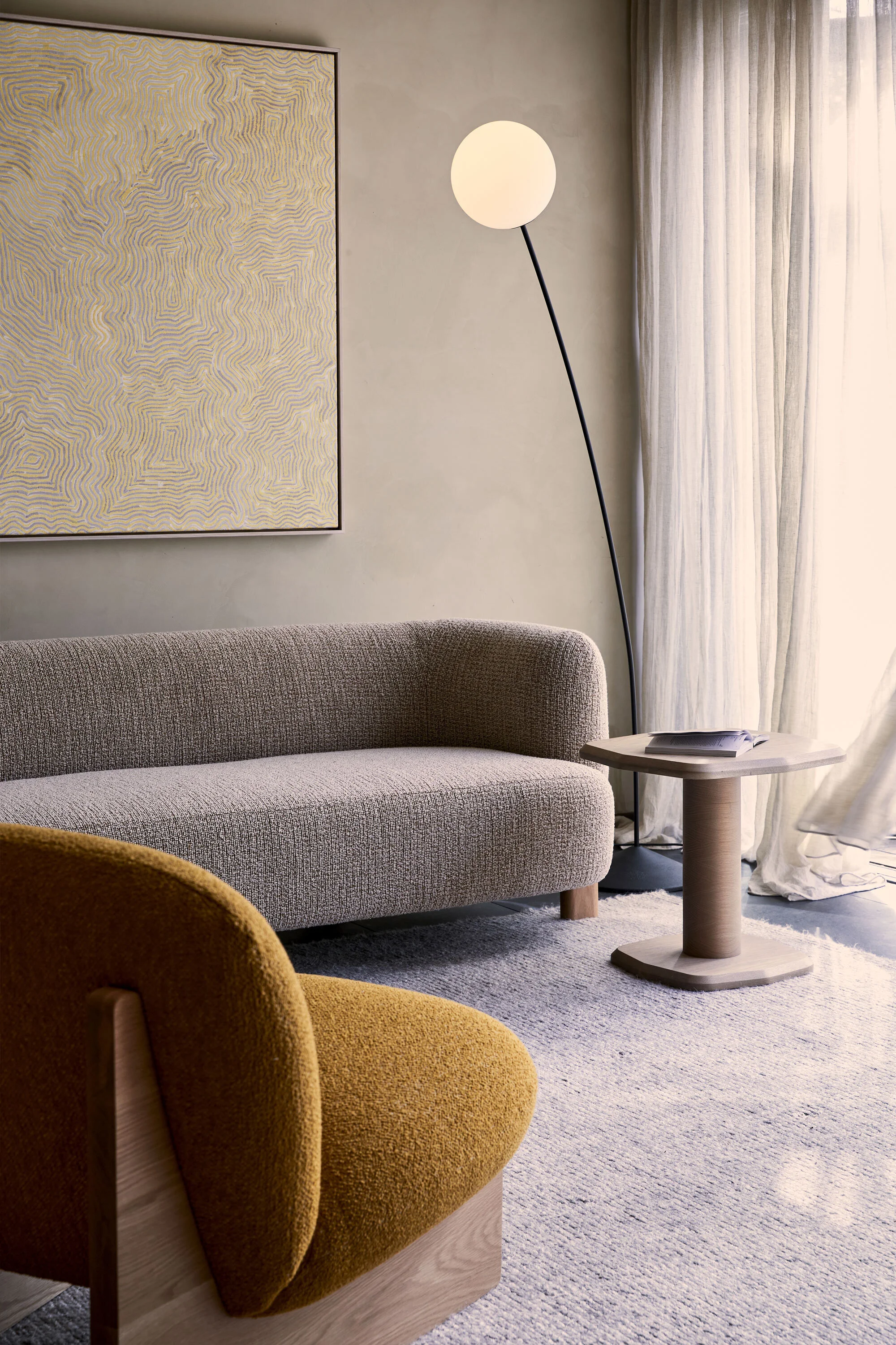‘The edges are softened for winter, curves and organic shapes feel more peaceful and easier to live with; heavy boucles and slubby wools cover ottomans like moss over spherical orbs and nestle, naturally next to naive forms in oversized proportions - as if the furniture too has prepared for the winter lockdown,’ says Jardan.