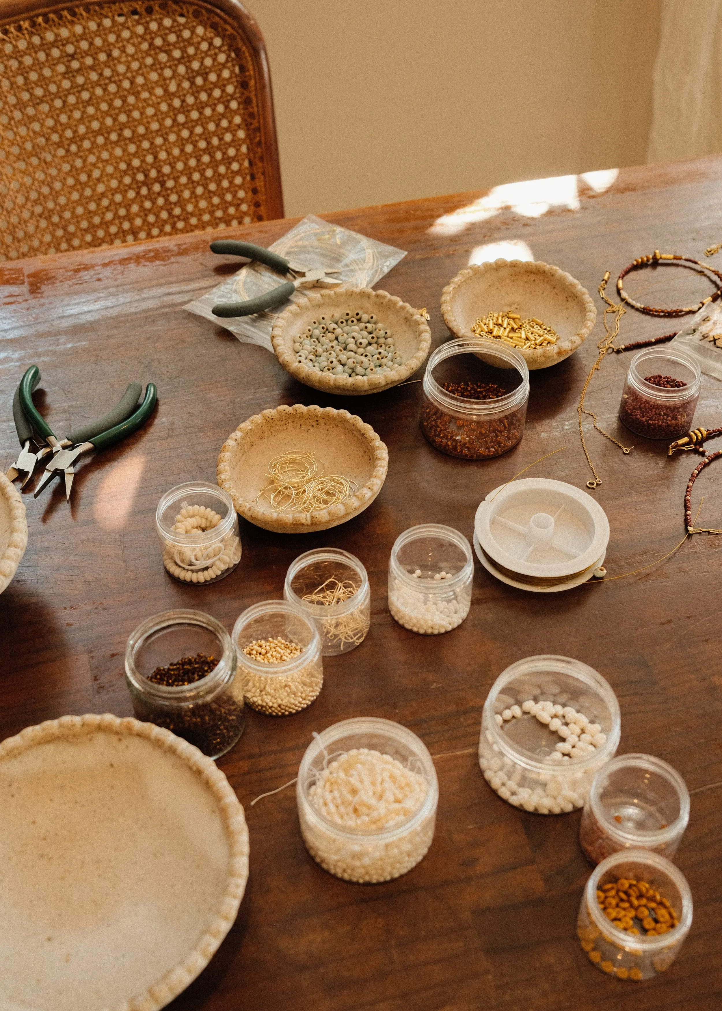 Hosted in the light-filled Art Department Studio in Woolloomooloo, the workshops will be shaped around a long table laid with ceramic dishes of pearls, handmade beads, colourful glass and sterling silver and gold-filled findings.