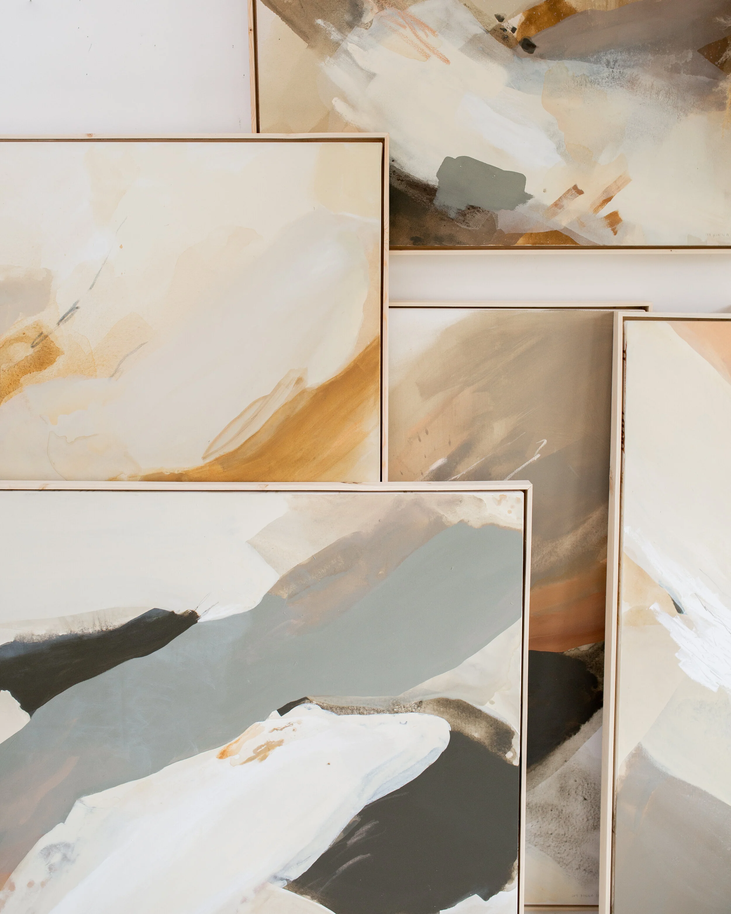 Canadian-based abstract artist Joy Kinna draws inspiration from the landscape, coastline and nature when creating her ethereal paintings.