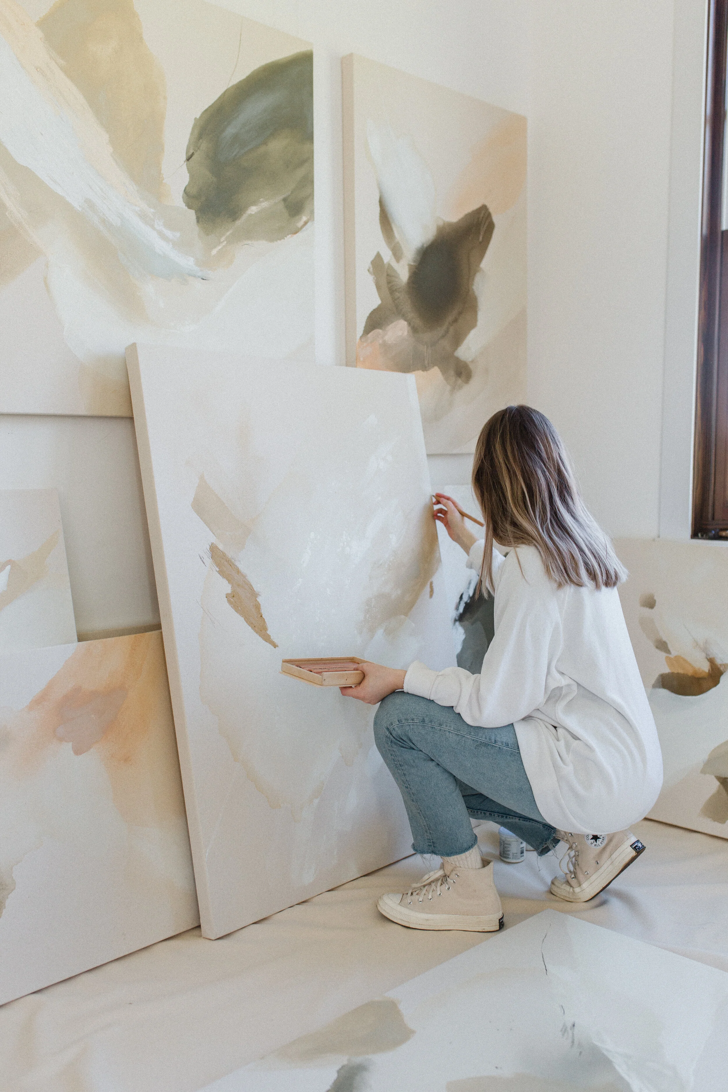 For as long as she can remember, Joy has been immersed in art, but it wasn’t until she studied art in university that she explored abstract painting. ‘My approach to art now is very intuitive while still being heavily inspired by materials and the act and process of art-making itself.’
