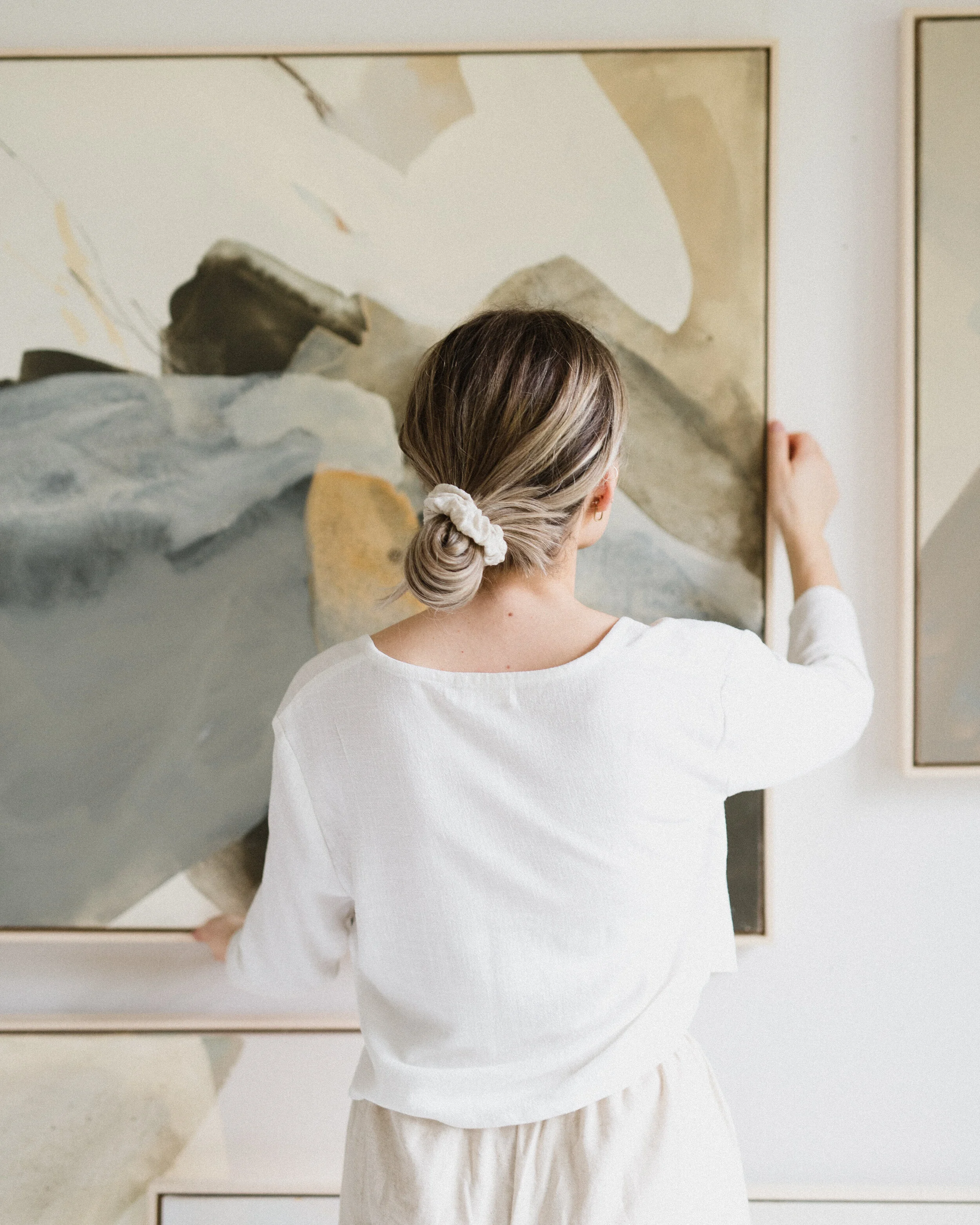 When asked about which of her artworks reflects who she is as an artist, Kinna says she resonates with Into The Rush and Here and Now. ‘The titles are juxtaposing. Into the Rush feels full and busy, while Here and Now is about being present, slowing down, and frankly the opposite of rush. I think these are the two real parts of myself and my artistic process. There is the “go, go, go”, the busy, the hustle, but more importantly, there is the here and now – the slowing, processing, and reflecting.’