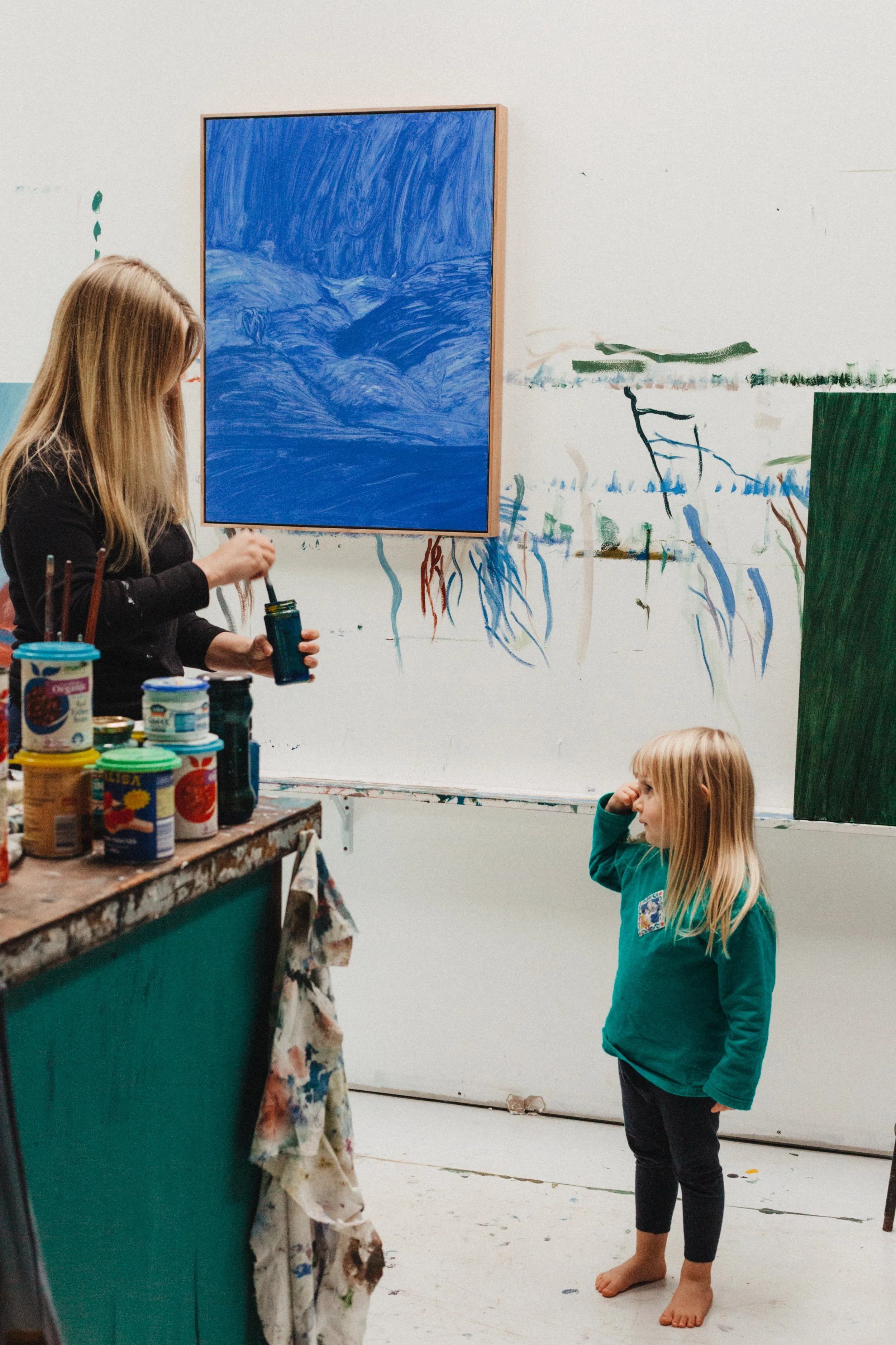 With her galleries’ encouragement and support to keep painting—and a break from exhibiting after the birth of Leni-Jean – Kathryn is finding her juggle of art making and parenting. The break meant she was able to return feeling vital and healthy, buzzing with creative energy and clear expectations of what is achievable. ‘You definitely have to become far more efficient with your time and what you can juggle,’ she adds.