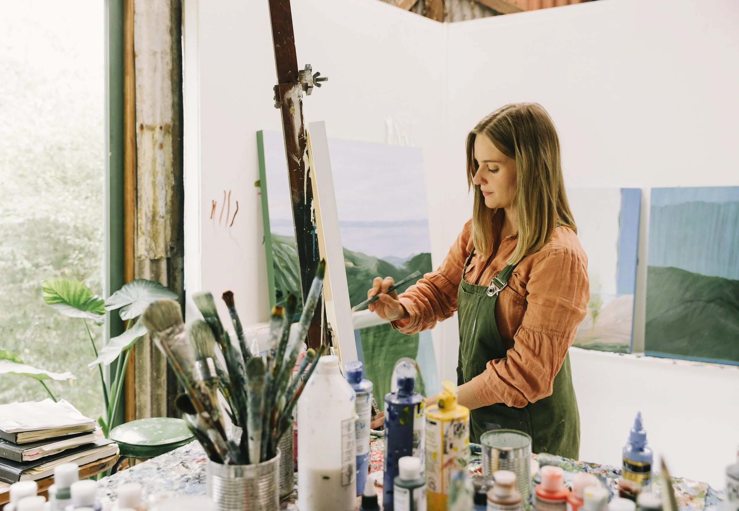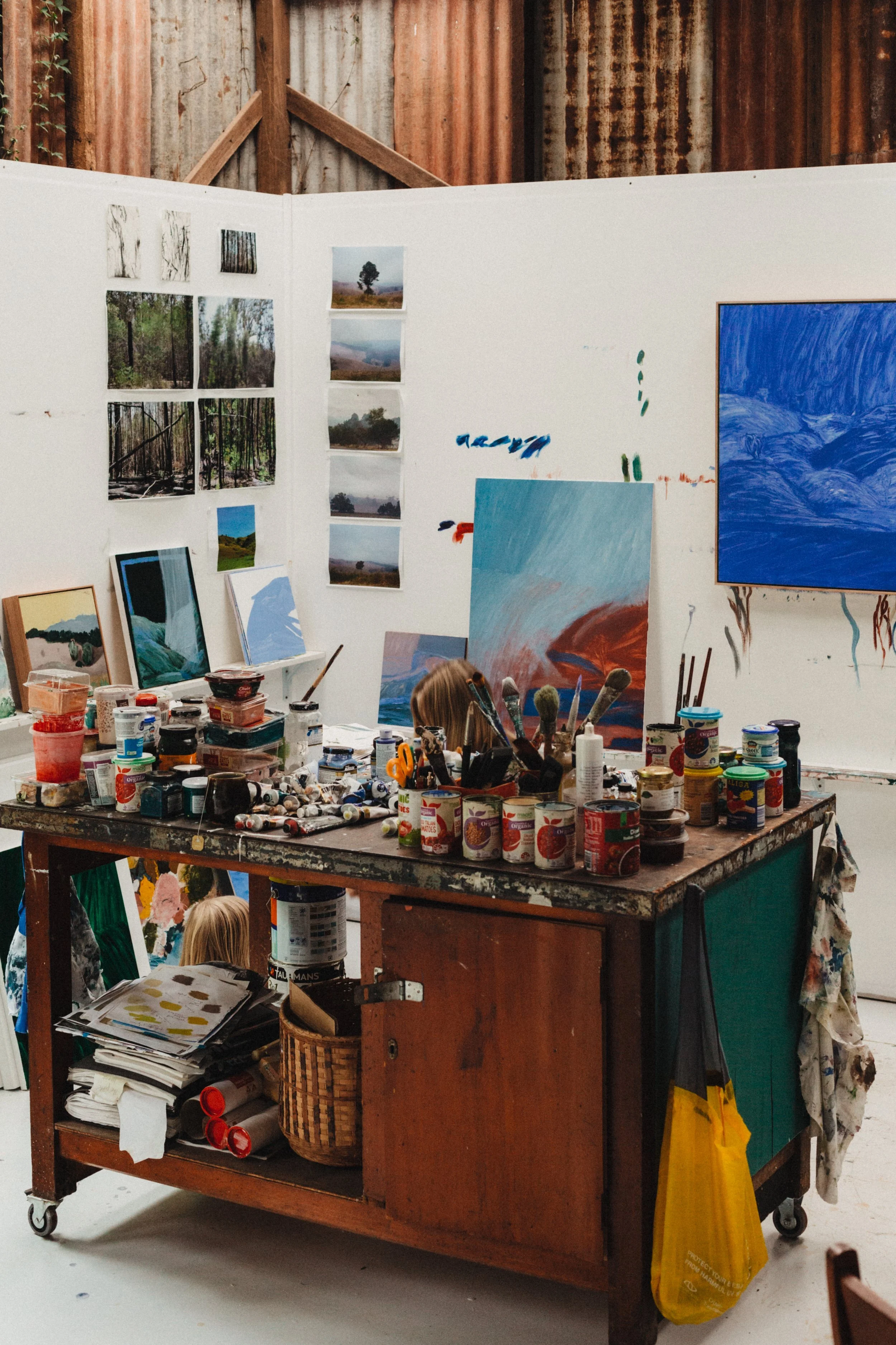 Moving out to the country allowed for a studio next to her home, surrounded by nature in a small, open plan cottage style home that has a huge deck in amongst the trees. ‘It’s a great area for the kids to play, and we sometimes paint out there too,’ says the artist.