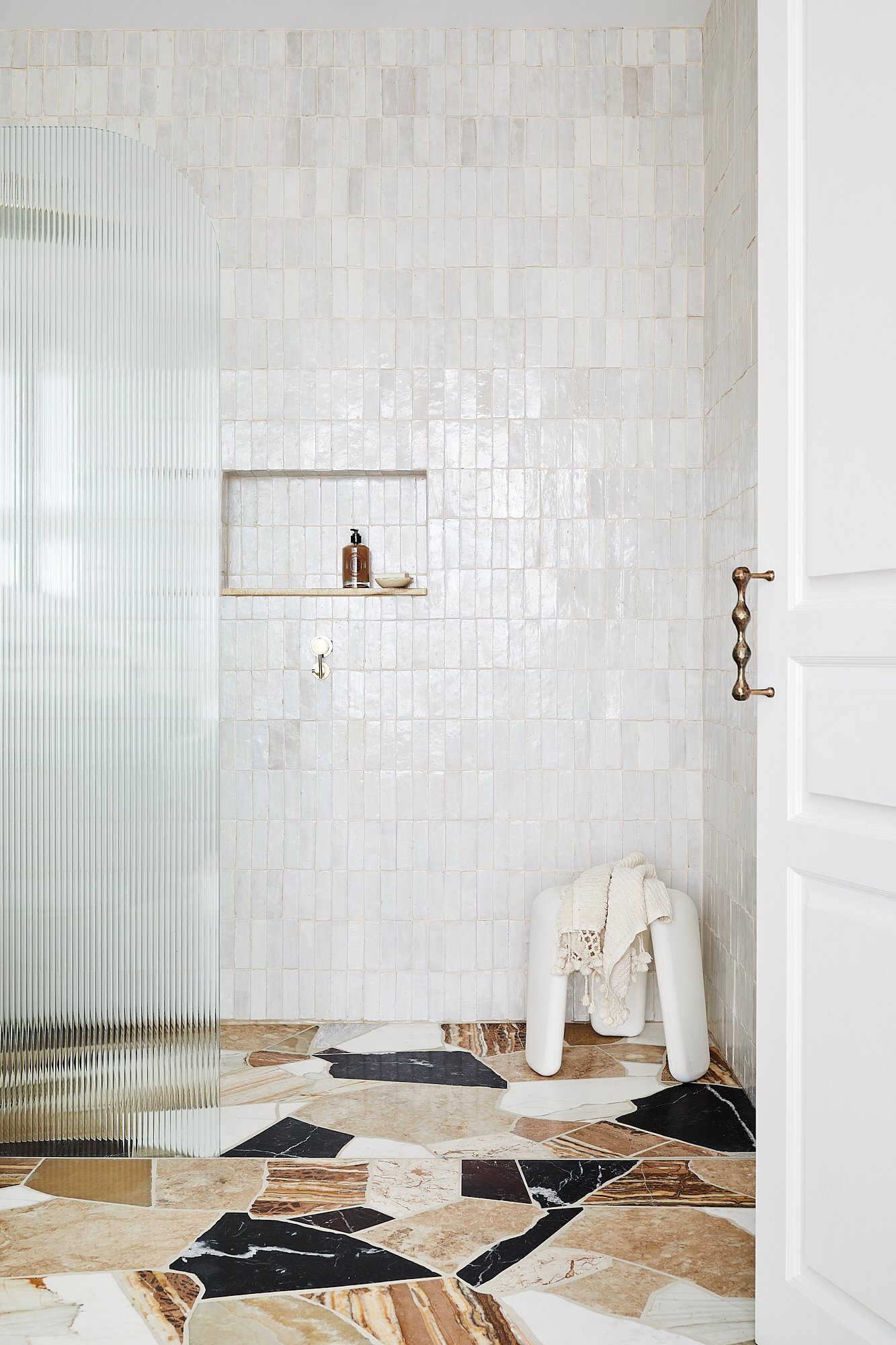 Wall tiles from Lulo Tiles. Palladiana floor & door handle designed by Kerrie-Ann Jones. Photo: Alicia Taylor