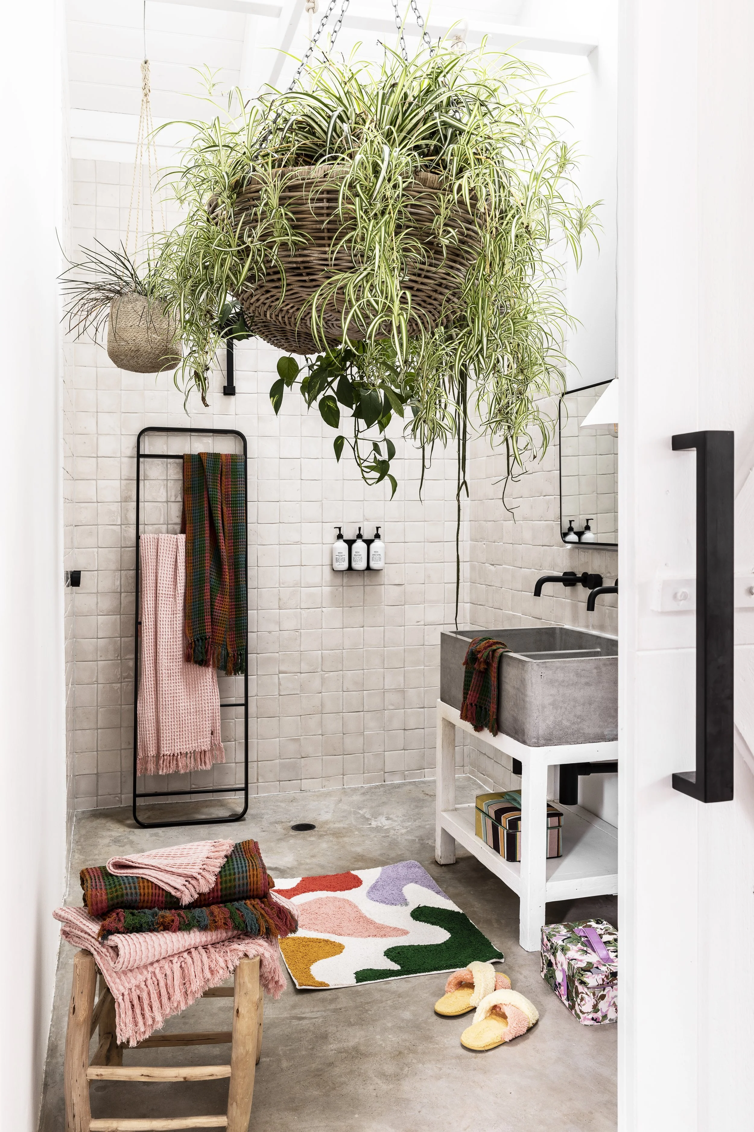 Islands In The Stream Bath Mat and Peach Bud Waffle Bath Sheet from Kip&Co. Photo: Courtesy of Kip&Co.