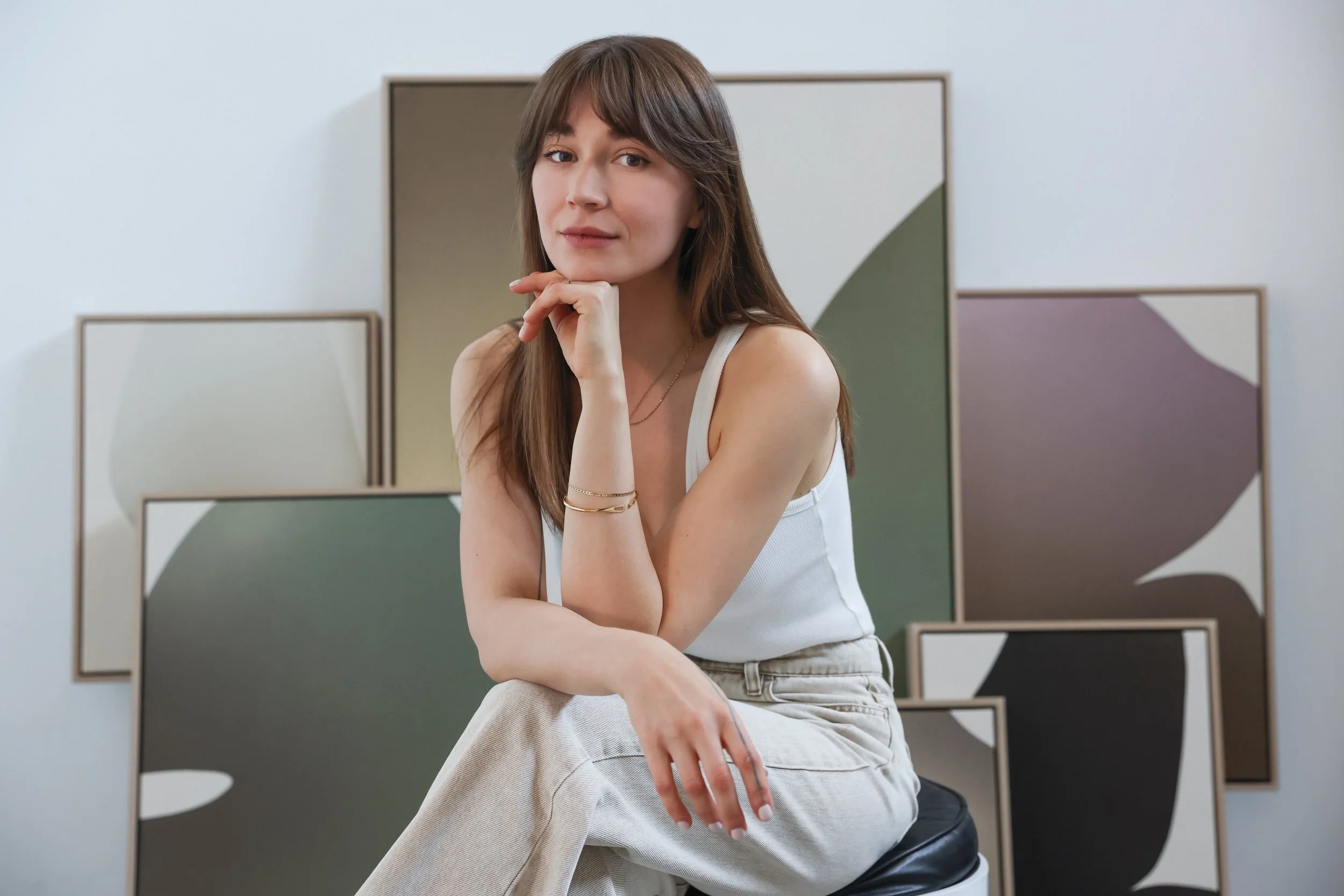 Melbourne-based abstract artist, Ksenia Shinkarenko left home at the age of sixteen to pursue a creative career in fashion design. Living in Tokyo as a young adult meant she could spend time exploring her creativity, slowly building toward the style which resonates with her today. ‘Living independently from a young age afforded me moments of solitude to better understand myself and discover what I’m drawn to,’ says Ksenia.