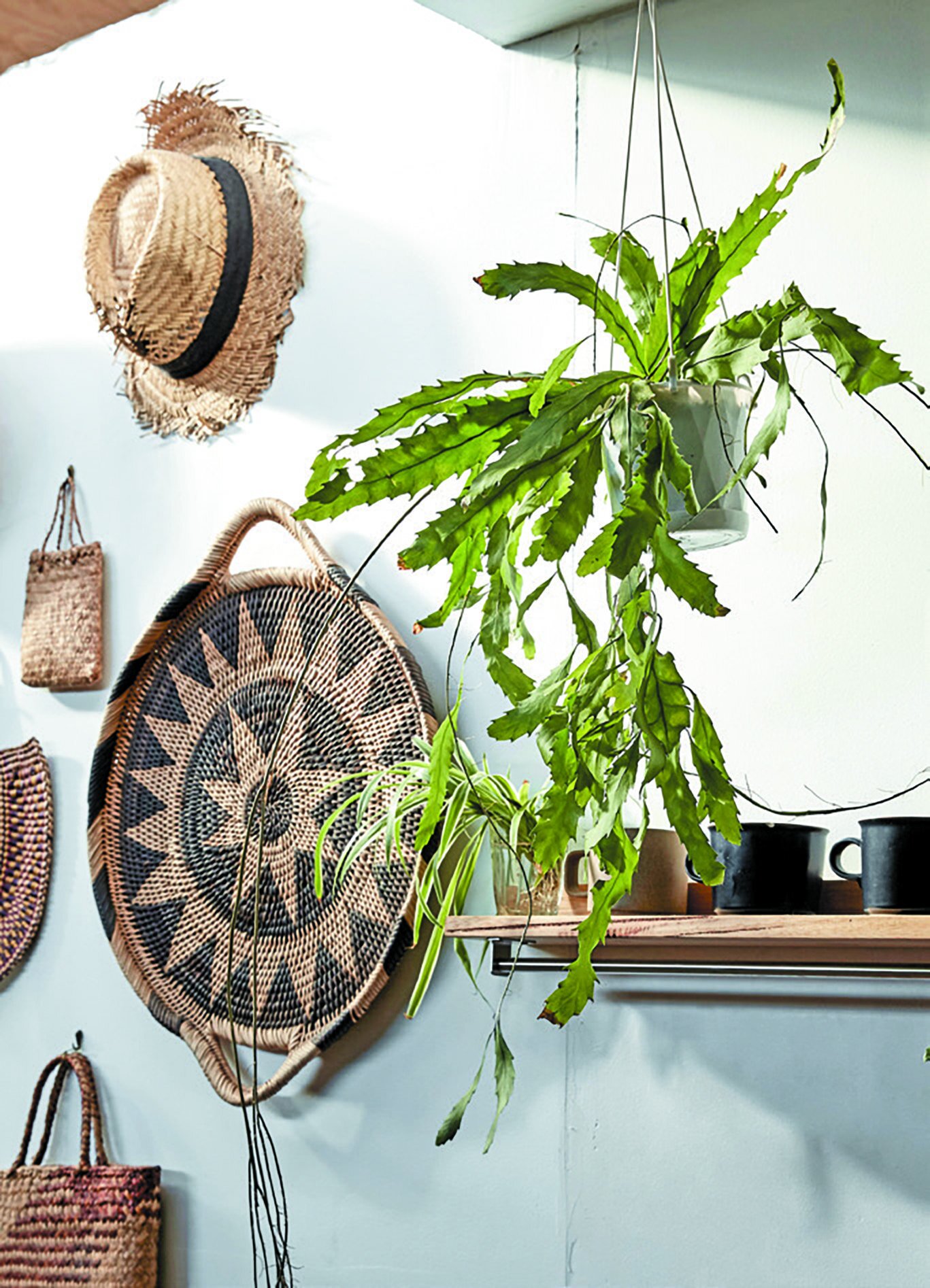 Plants pair beautifully with organic elements and neutral tones, such as these woven baskets and hats. Photo - Lilli Thompson.
