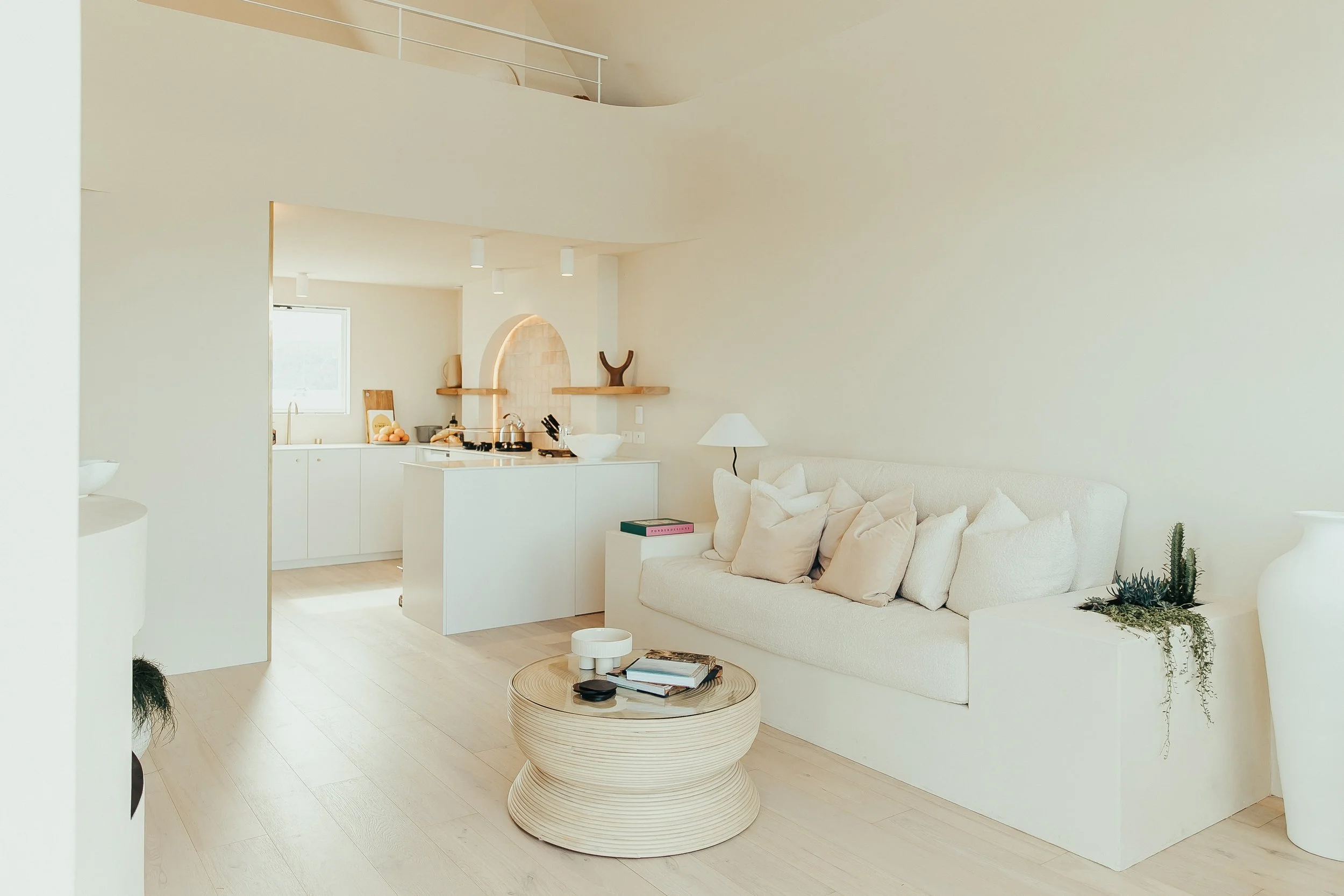The Mediterranean-inspred interior features a calm and neutral palette. Photo: Ian Davidson