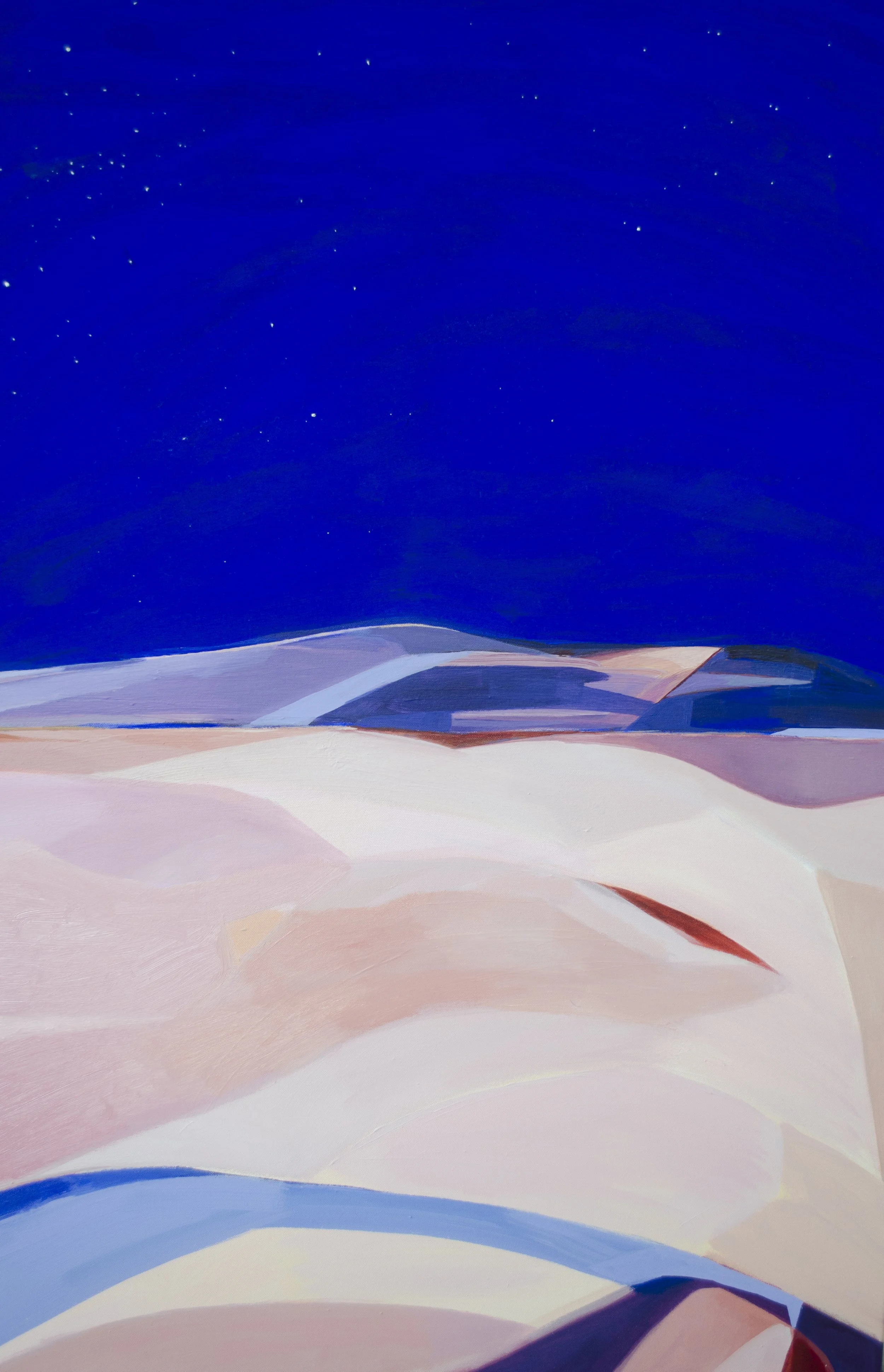 Her work utilises a soft, pastel palette struck by splashes of intense colour. In her paintings, Lisa seeks to ‘disrupt’ the landscape or make something otherwise familiar seem foreign to the viewer.
