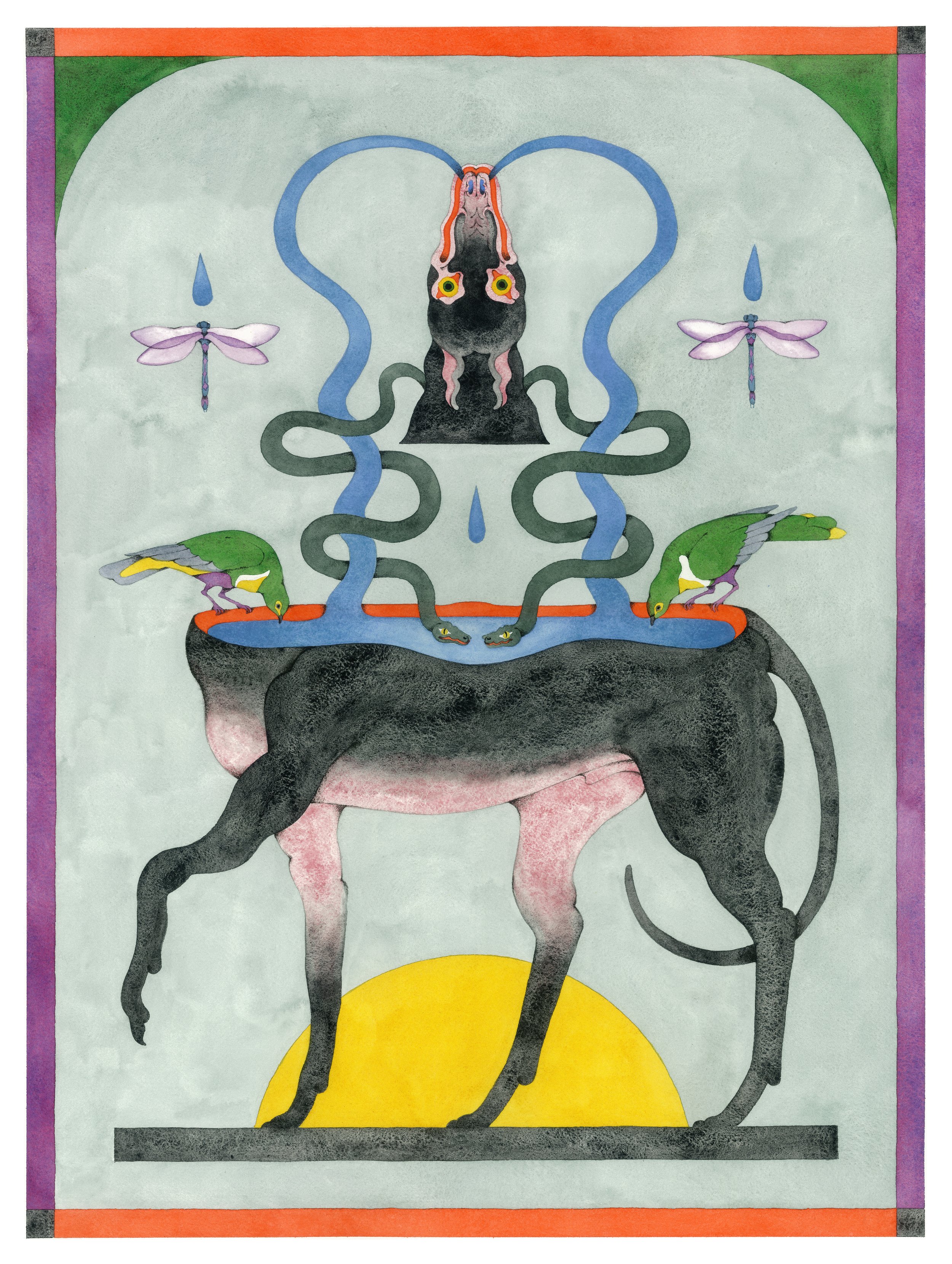 A butterfly-winged cobra snake, bow-tied dragon, and blind-folded bird-woman — these are just some of the otherworldly creatures from the art and brilliant mind of Lou Benesch. Working from her studio in the French countryside, Lou uses her watercolour creations for fantastical storytelling of the past, inspired by her love of folklore, nature, literature, and music.
