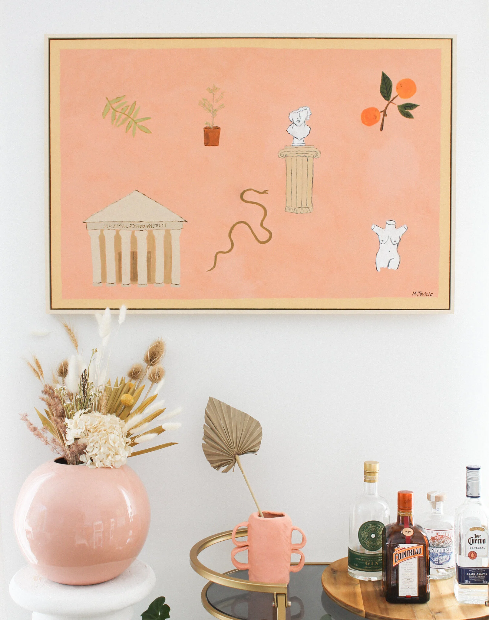 The self-taught artist draws on her love of family coming together and past and future travel manifestations in her work, ‘Nostalgia also plays a big role in the inspiration behind my paintings,’ she says.
