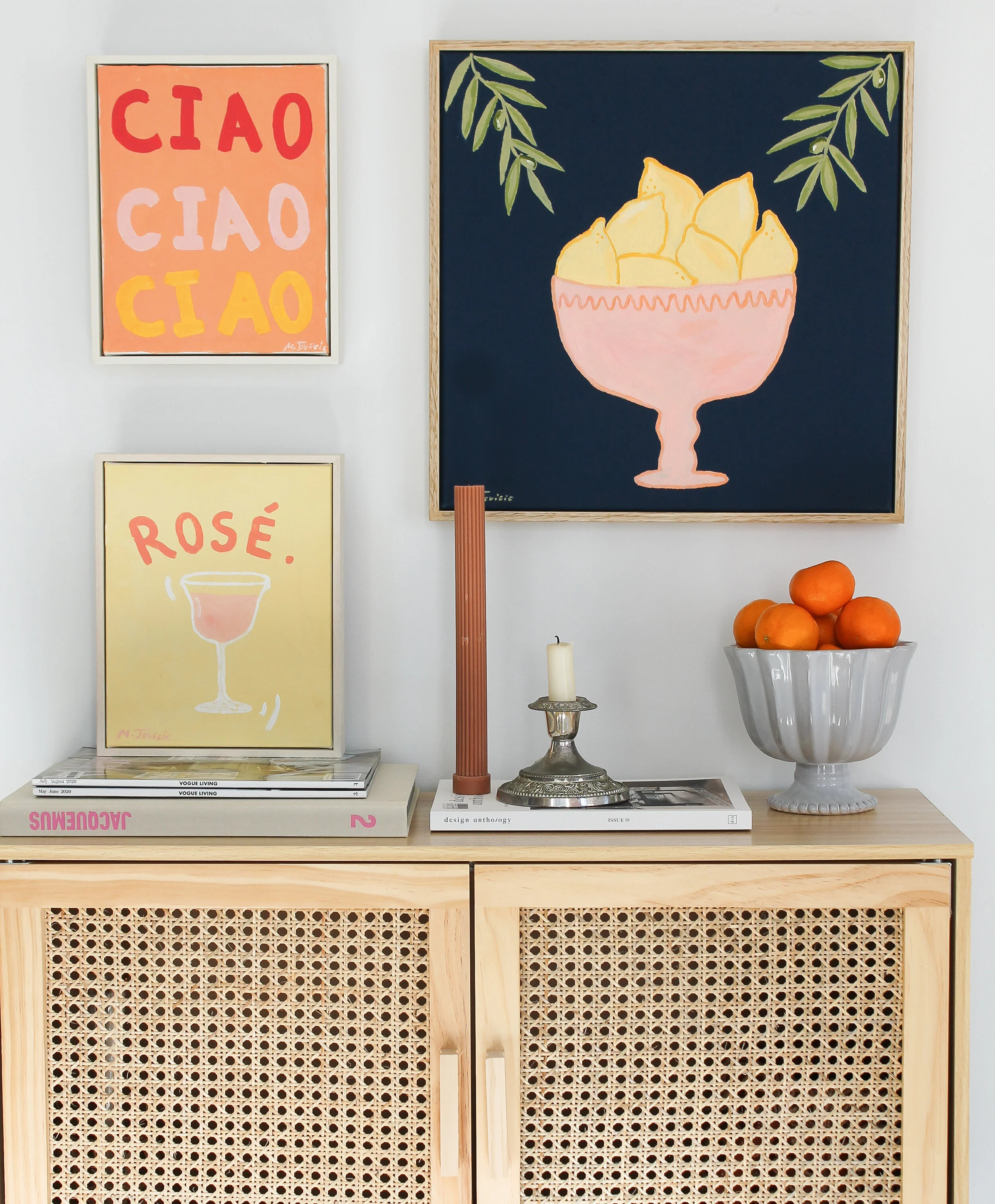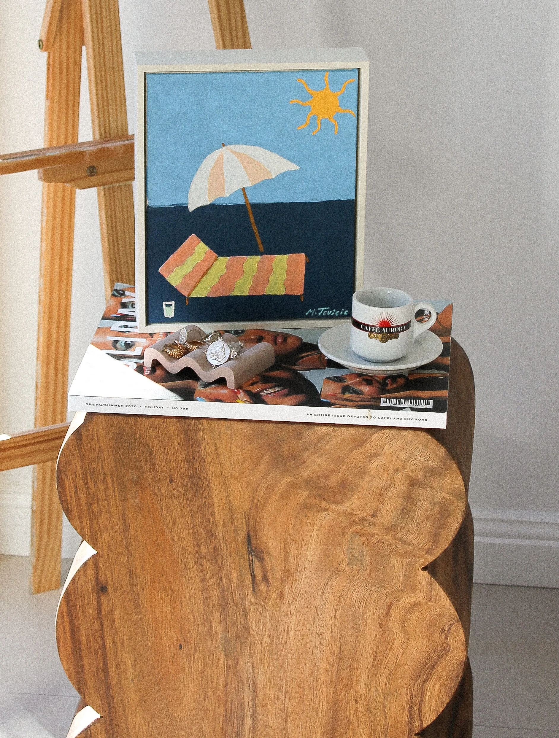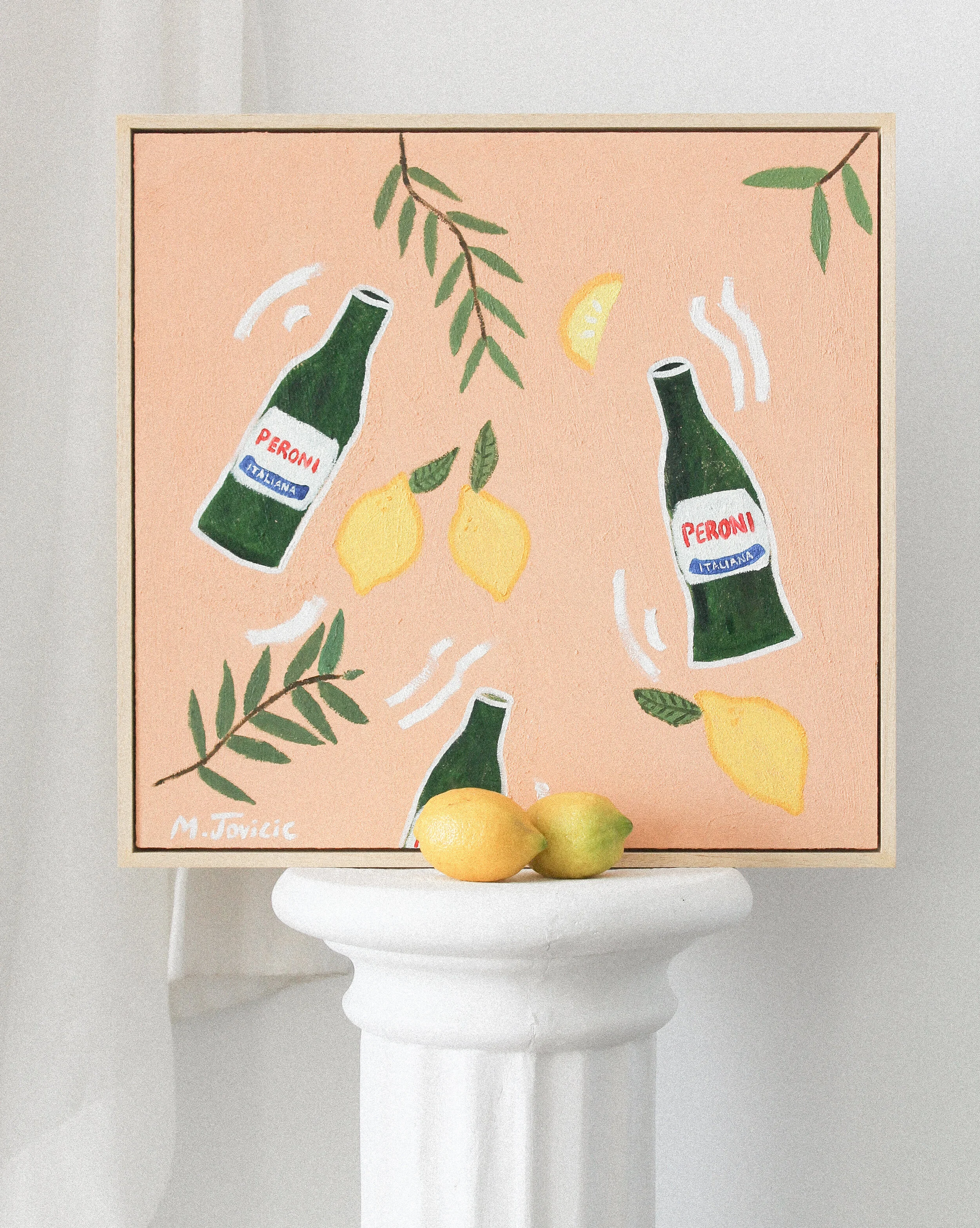 Each painted scene is whimsical and joyful – we see clusters of lemons, bowls of colourful gelato and glasses of rosé. Madeline’s work takes snapshots of the little moments and celebrates them. And we want to dive right in.