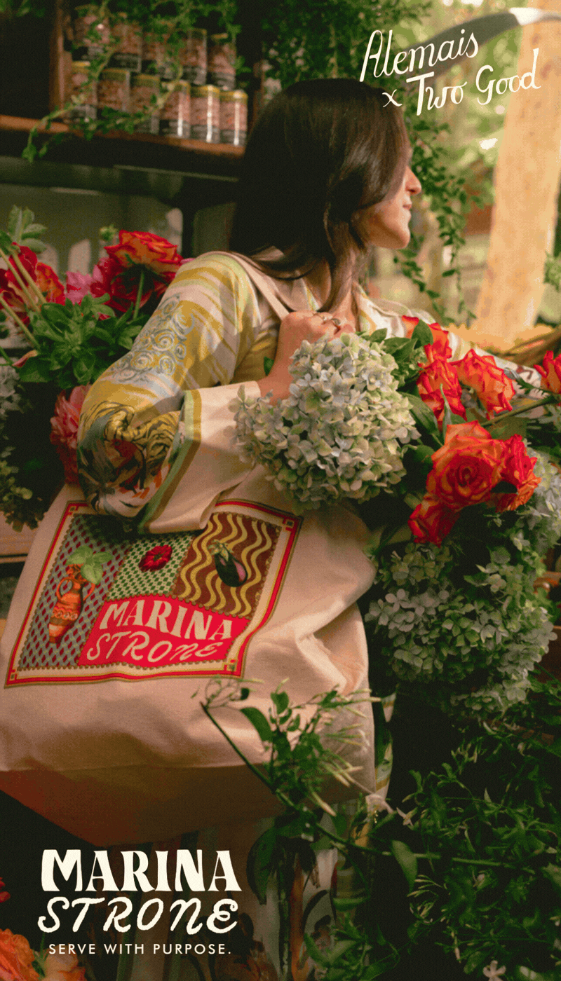 Designed in collaboration with Alémais co-founder and creative director Lesleigh Jermanus, the Marina-Strone Collection marks the second collaboration between Two Good Co and Alémais, ‘I've always felt that there is a shared language between food and fashion, serving as a vehicle for expression, connection and telling stories,’ shares Lesleigh. ‘Working with Two Good on our second project together allowed us to honour a deeply personal story and translate it into something that carries warmth and purpose.’